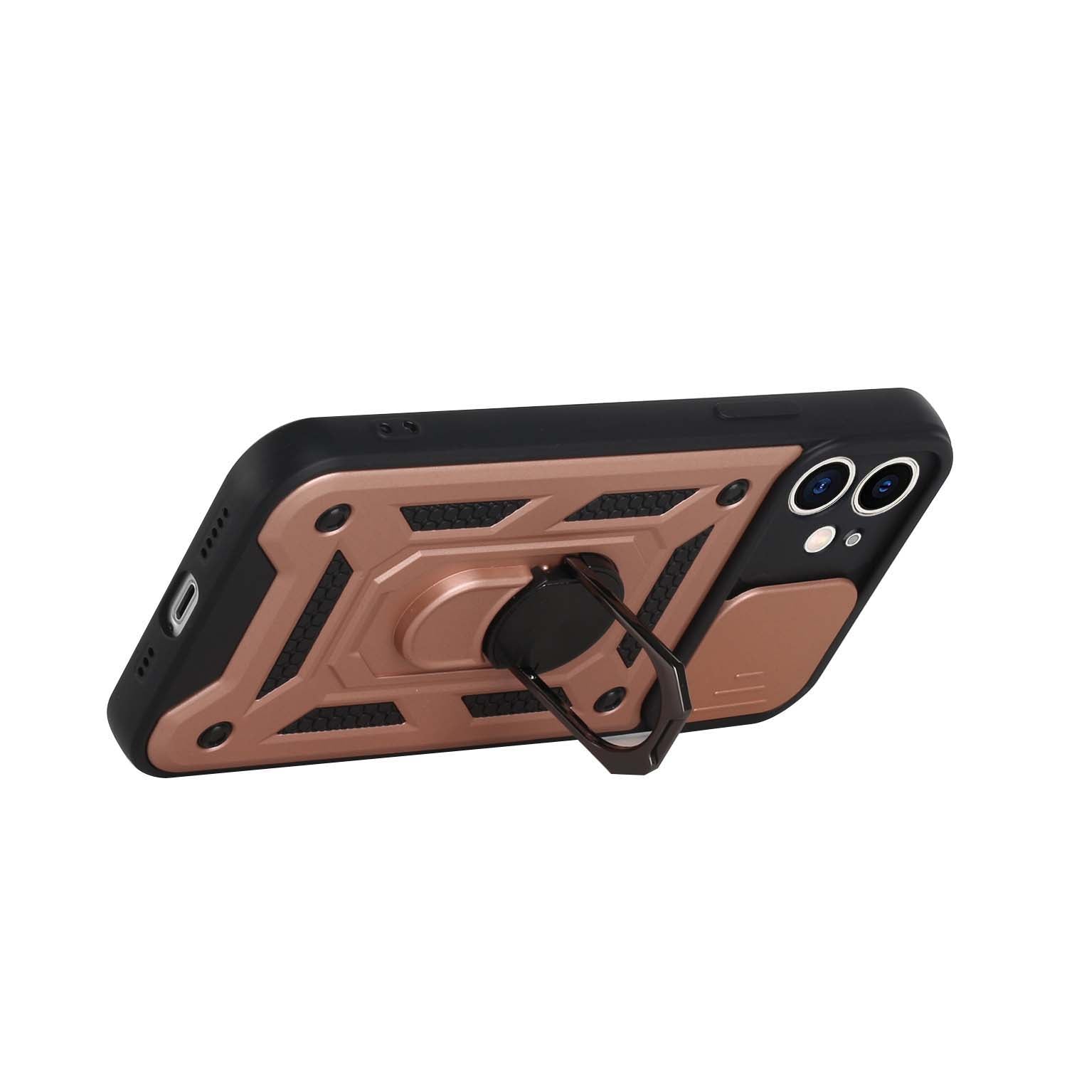 Rose Gold Heavy Duty Armor Cover with Camera Cover Protection Magnetic Kickstand Bracket Defender Anti-Slip Shockproof Durable Hard Plastic Shell Rugged Bumper Case