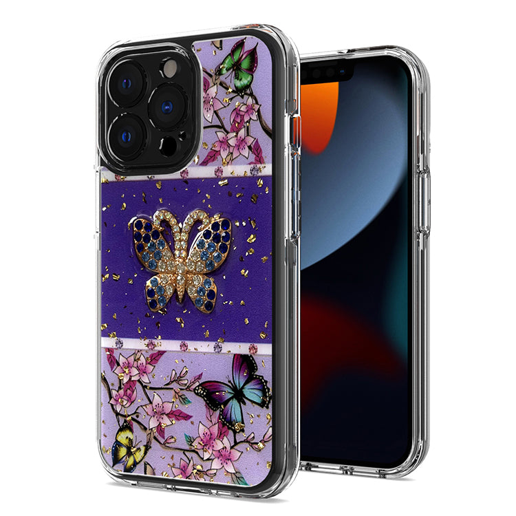 Luxury Design Fashion Ornament Butterfly Floral Epoxy Glitter Sparkle Hybrid Case Silicone Bumper Rubber TPU Protective Cases