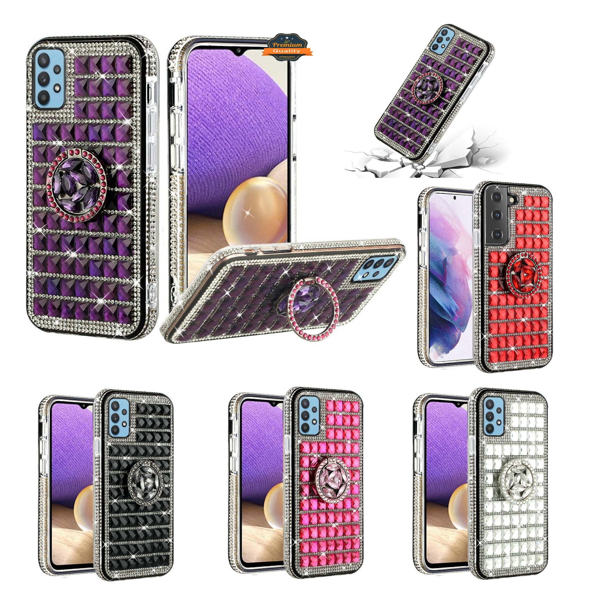 Diamond Cases Bling Glitter Shiny Rhinestone Case for Girls and Women, Luxury Bling Sparkly Rhinestone Ultra Slim Durable Crystal Bumper Soft Silicone Rubber Protective TPU Cover with Ring Stand Kickstand