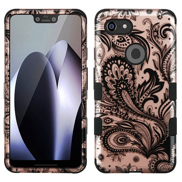 For Google Pixel 3 XL Hybrid Three Layer Hard PC Shockproof Heavy Duty TPU Rubber Anti-Drop Phoenix Flower Phone Case Cover