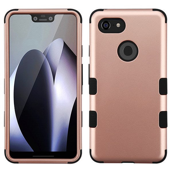 For Google Pixel 3 XL Hybrid Three Layer Hard PC Shockproof Heavy Duty TPU Rubber Anti-Drop Rose Gold Black Phone Case Cover