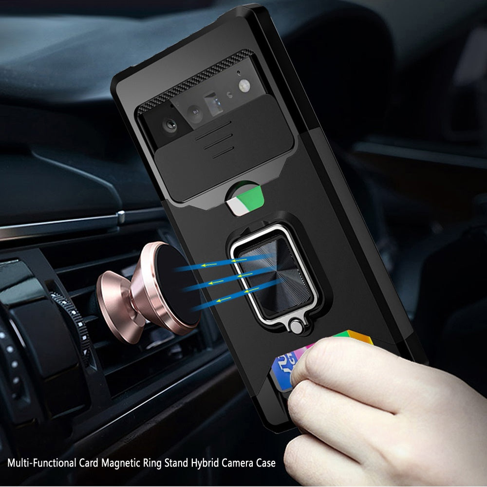 For Google Pixel 6 /6 Pro Wallet Case with Ring Stand & Slide Camera Cover Credit Card Holder, Military Grade Hard Shockproof Protective Phone Case Cover