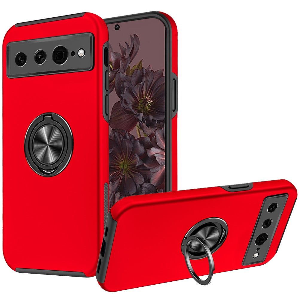For Google Pixel 7/ 7 Pro Hybrid 360 Degree Rotatable Metal Invisible Ring Stand Holder Fit Magnetic Car Mount Ultra Slim Thin Phone Case Cover