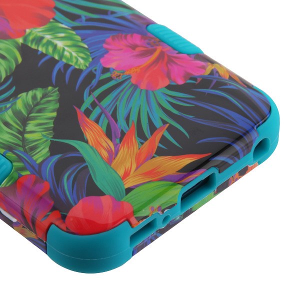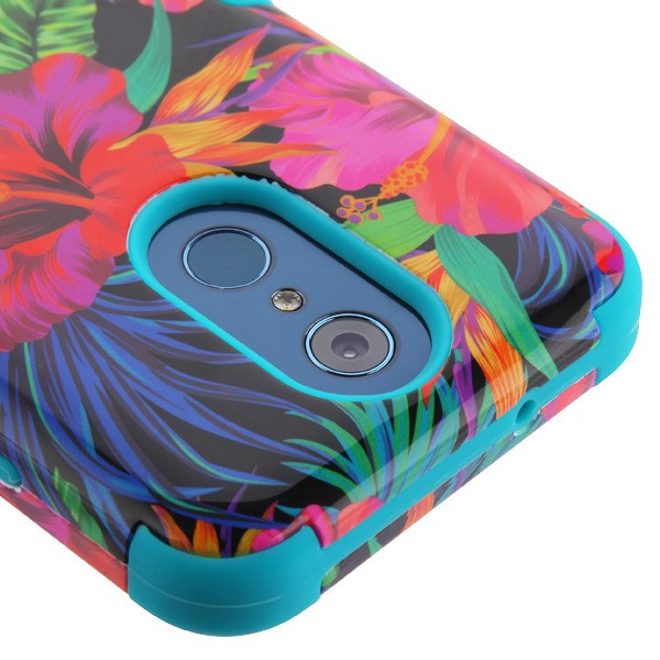 For LG Q7, LG Q7+ Floral Design Hybrid Three Layer Hard PC Shockproof Heavy Duty TPU Rubber Anti-Drop Hibiscus Tropical Flower Phone Case Cover