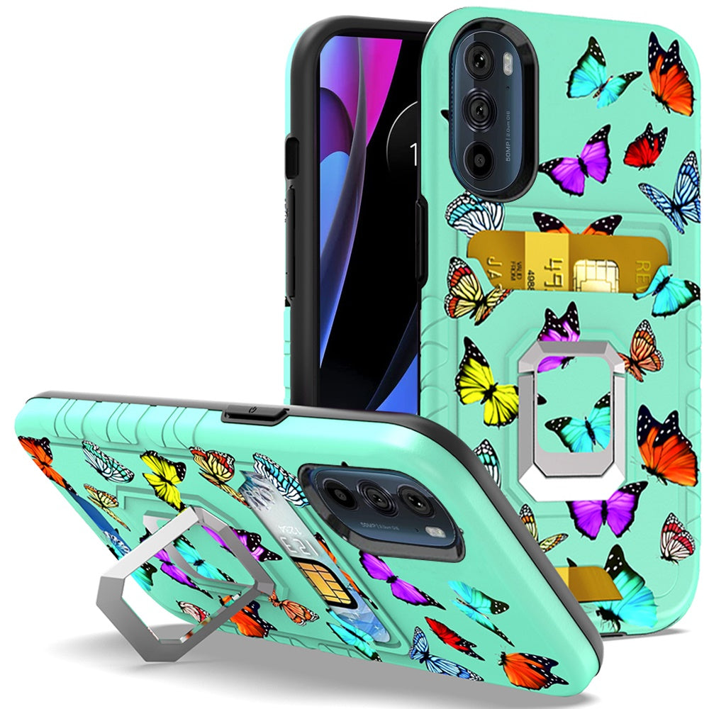 For Motorola Edge+ 2022 /Edge Plus Stylish Wallet Case Designed with Credit Card Holder & Kickstand Ring Hybrid Armor Phone Case Cover