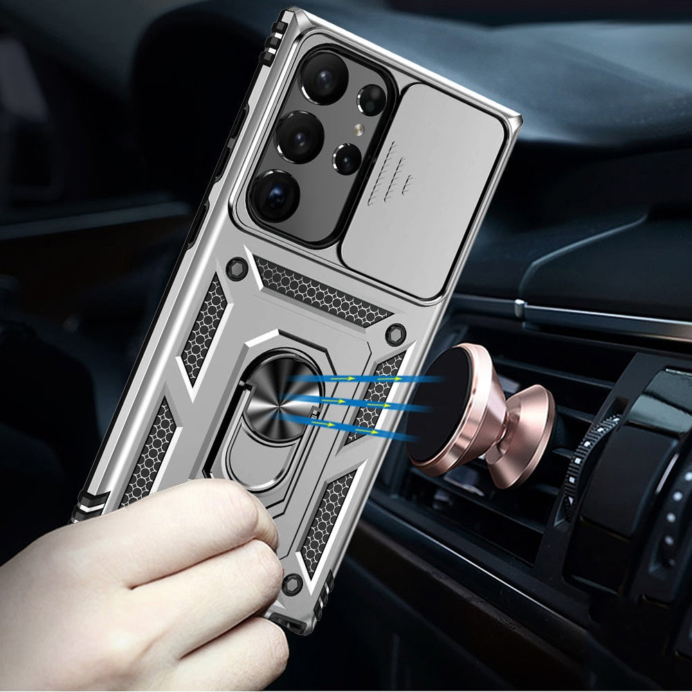 • Compatible for MOTOROLA Moto G 5G 2025, Smart Window: Delicate camera slide cover; higher than the raised lens; stuck in a groove. Premium lens protection, Magnetic Kickstand: Metal ring stand feature will bring you more convenience for movie-watching with multi-viewing angles. Built-in metal magnetic sheet which can be directly adsorbed stably to the magnetic car mount holder, Military Grade Shockproof: Military grade drop test standards; premium dual-layers defender case; enhance shock-absorption protection; Metal painted surface, Car Mount: Built-in iron plate allows the case easy to be attached to the magnetic car holder. Extremely convenient and excellent for phone calling while driving.(Not includes the magnetic car mount holder)