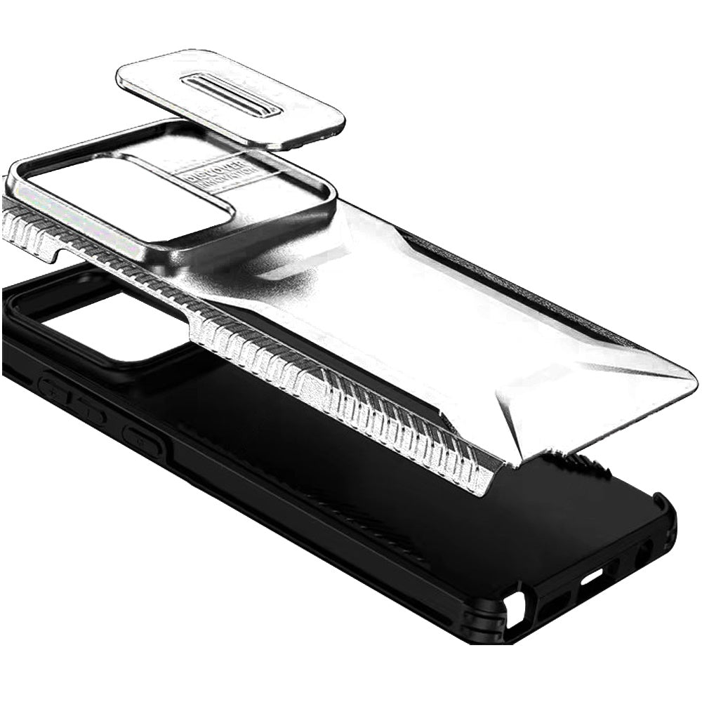 Silver Phone Case Cover For Moto G 5G (2025) Protect your phone in style with this ultimate U design hybrid case, featuring a sleek and modern look. The durable combination of TPU and PC materials ensures exceptional protection against drops and impacts, while the sliding camera window cover adds an extra layer of defense against scratches and dust. With its slim, lightweight design and comfortable grip, this case offers both style and functionality. Precise cutouts ensure easy access to all buttons, ports, and features, making it a perfect companion for your everyday needs.