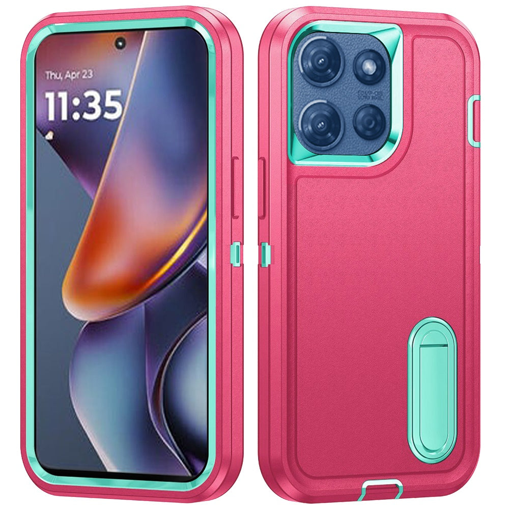 For Motorola Moto G 5G /Moto G 2025 Hybrid 3 Layers Hard 3in1 Shockproof with Kickstand Heavy Duty Hard TPU Rubber Anti-Drop Case Cover