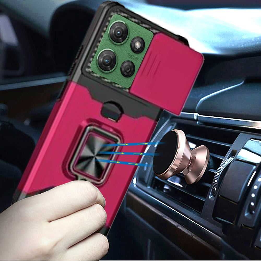 Hot Pink Phone Case Cover For Moto G Power 5G (2025) Premium Military Grade Drop Protection with Card Holder Slot and Camera Cover Slide, Heavy Duty Rugged Shockproof Phone Cover Built in Ring Stand Holder. Precise Cutouts & Sensitive Buttons Easily access buttons, speaker, camera, charging interface at the precise cutouts made from precision molding