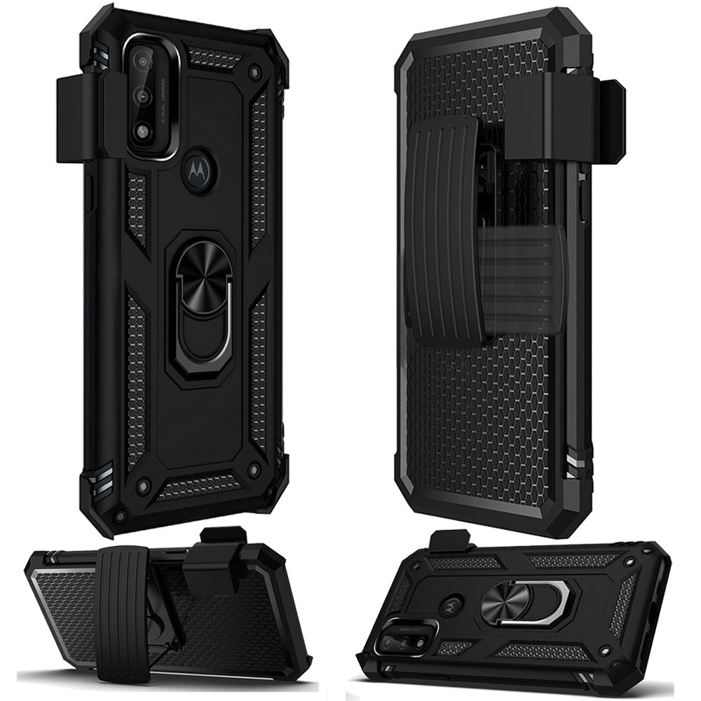 For Motorola Moto G Pure /G Power 2022 Combo Hybrid Armor with Belt Clip Holster Ring Kickstand Holder, Military Grade Black Phone Case Cover