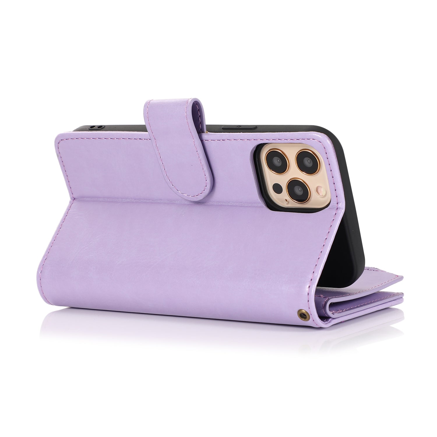 For Motorola Moto G Stylus 2022 4G Leather Zipper Wallet Case 9 Credit Card Slots Pocket Clutch Pouch with Stand & Strap Lavender Phone Case Cover