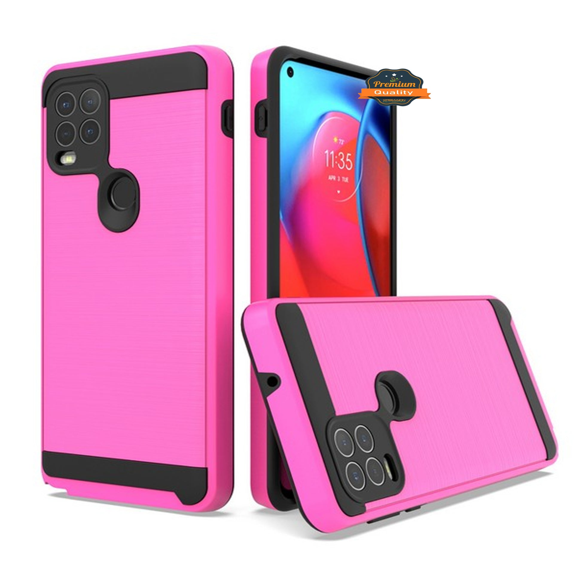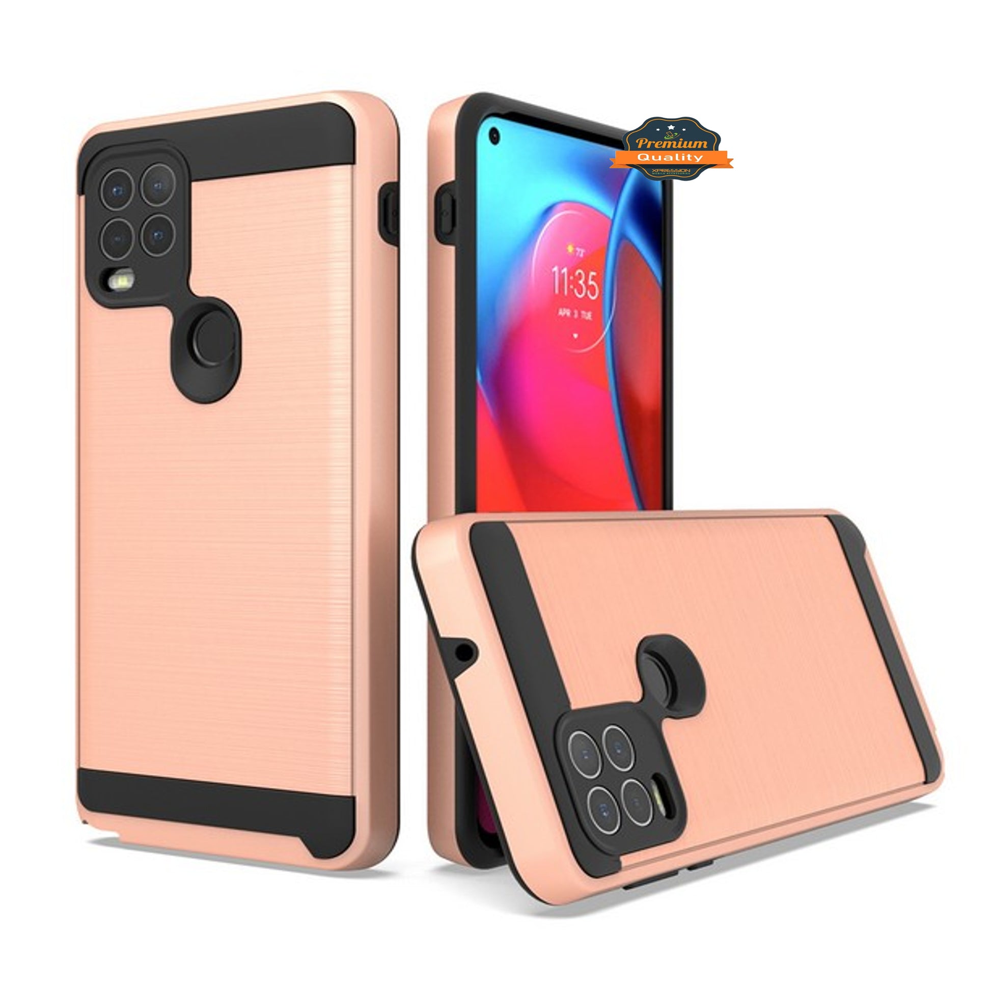 Motorola Moto G Stylus 5G 2021 Slim Rugged TPU + Hard PC Brushed Metal Texture Hybrid Dual Layer Defender Armor Shock Absorbing
