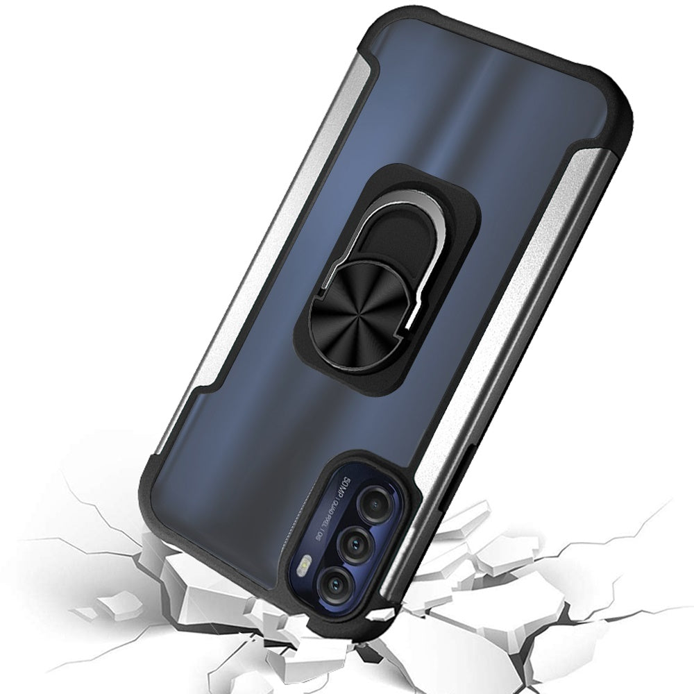 For Motorola Moto G Stylus 5G 2022 Clear Military Grade Hybrid with Ring Holder Kickstand [Magnetic Car Mount Feature] Phone Case Cover