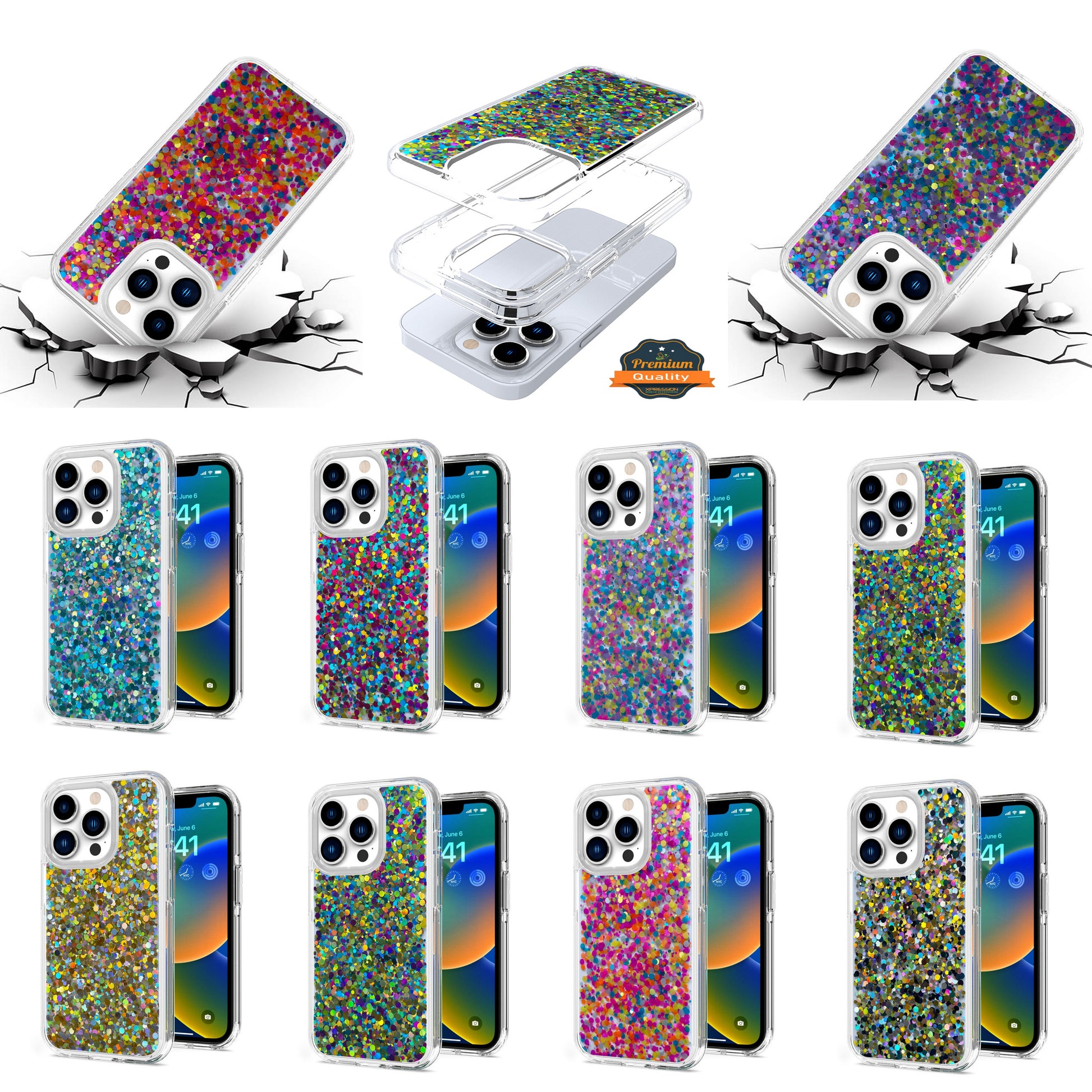 Luxury Design Fashion Design Mesmerize Full Epoxy Glitter Sparkle Bling Hybrid Hard Back Shell Shock-Absorption Rubber Silicone TPU Slim Bumper Protective Case Cover.