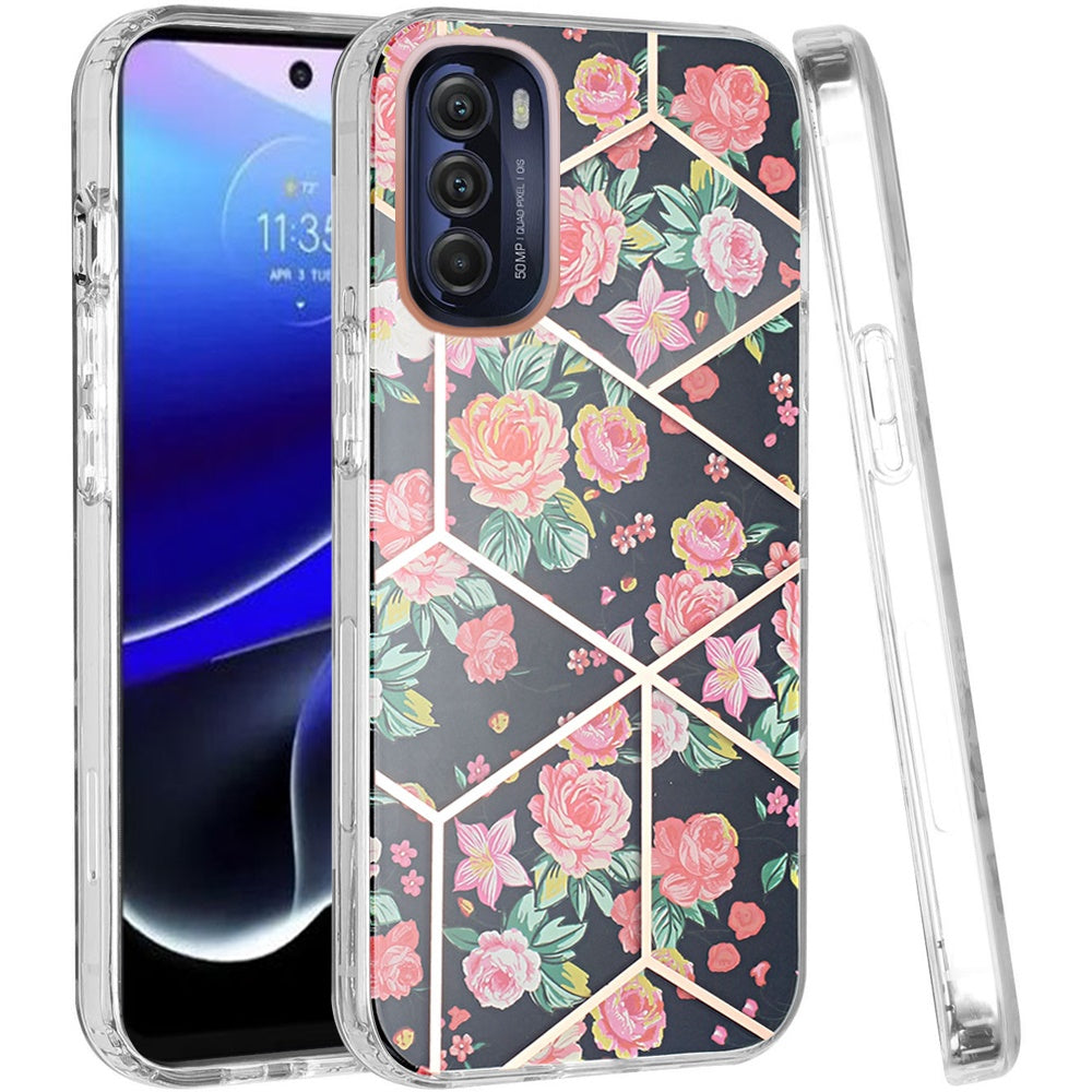 For Motorola Moto G Stylus 5G 2022 Fashion Floral IMD Design Flower Pattern Hybrid Hard PC Rubber TPU Slim Shockproof Phone Case Cover