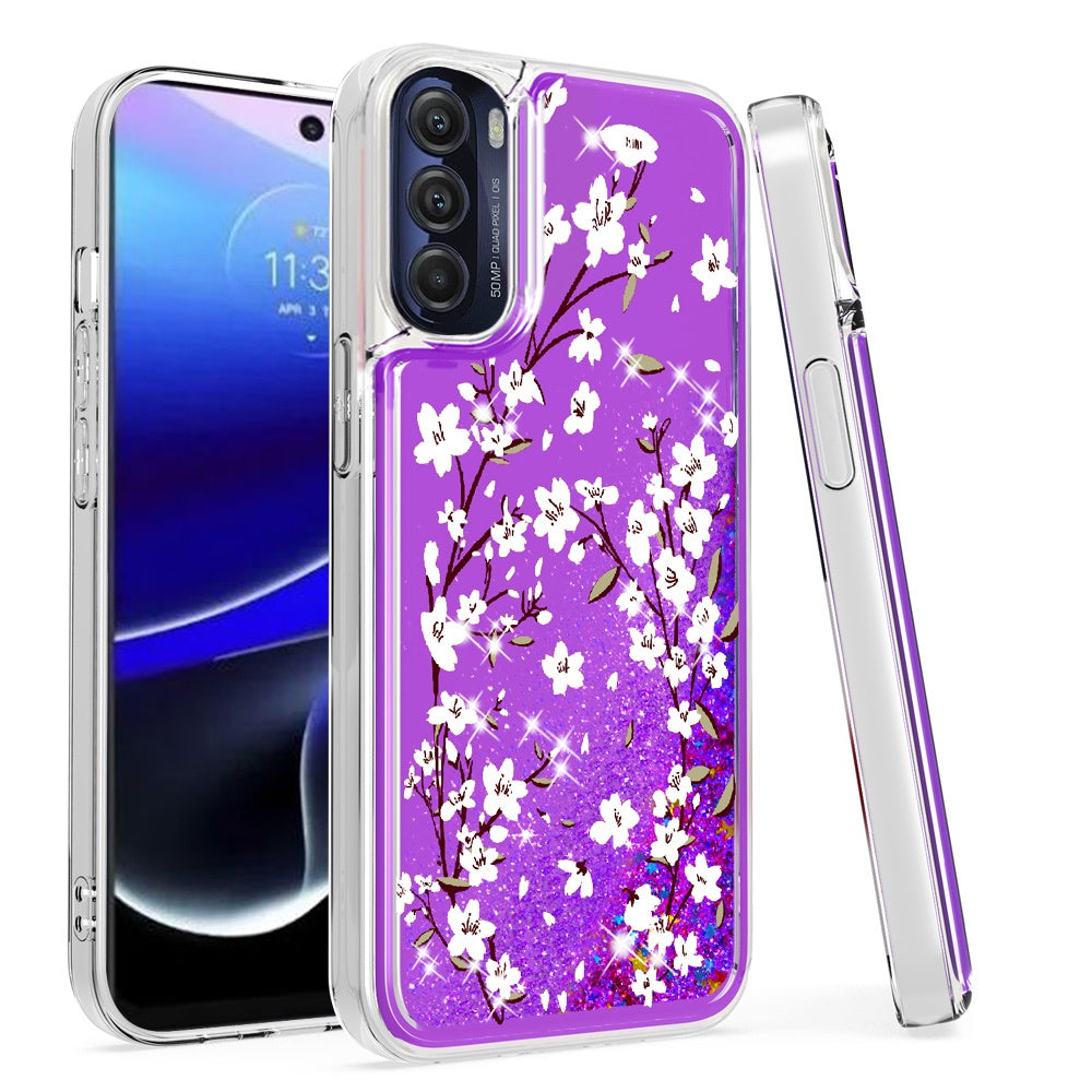For Motorola Moto G Stylus 5G 2022 Quicksand Water Flowing Liquid Floating Glitter Bling Flower Fashion TPU Hybrid Phone Case Cover