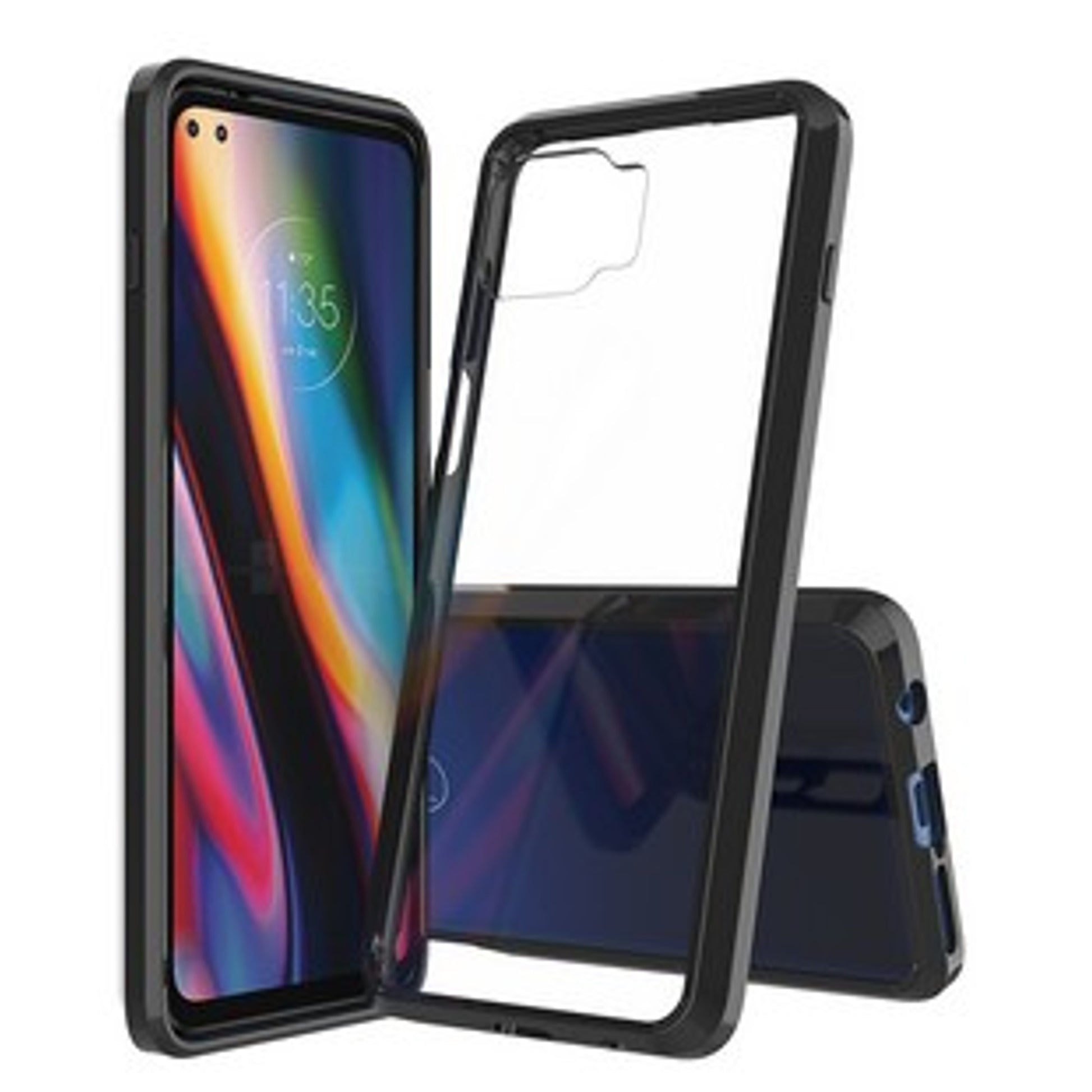 For Motorola Moto One 5G, Moto G 5G Plus Crystal Clear Back Panel + TPU Hybrid Thin Slim Hard Shockproof Defender Anti-Drop Black Phone Case Cover