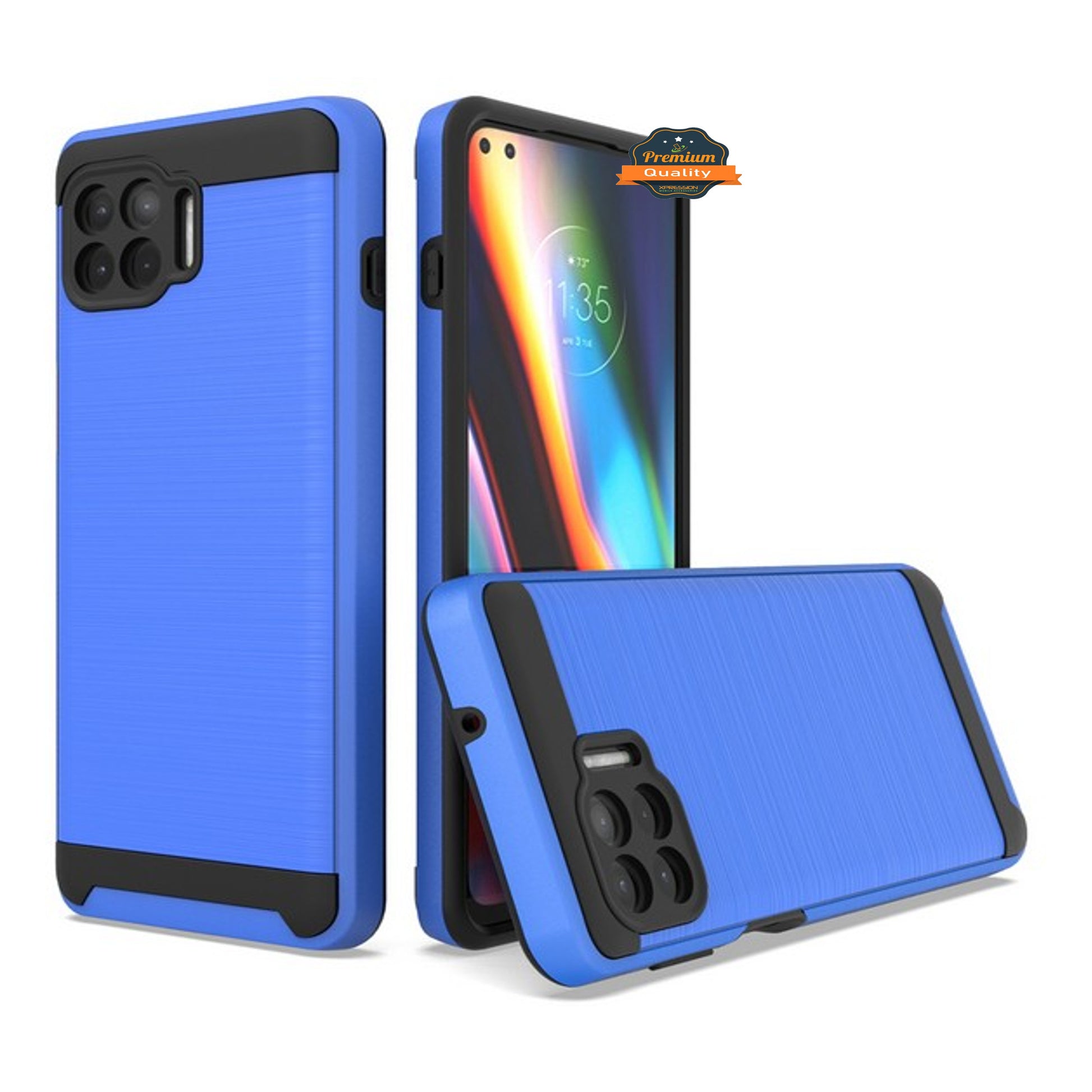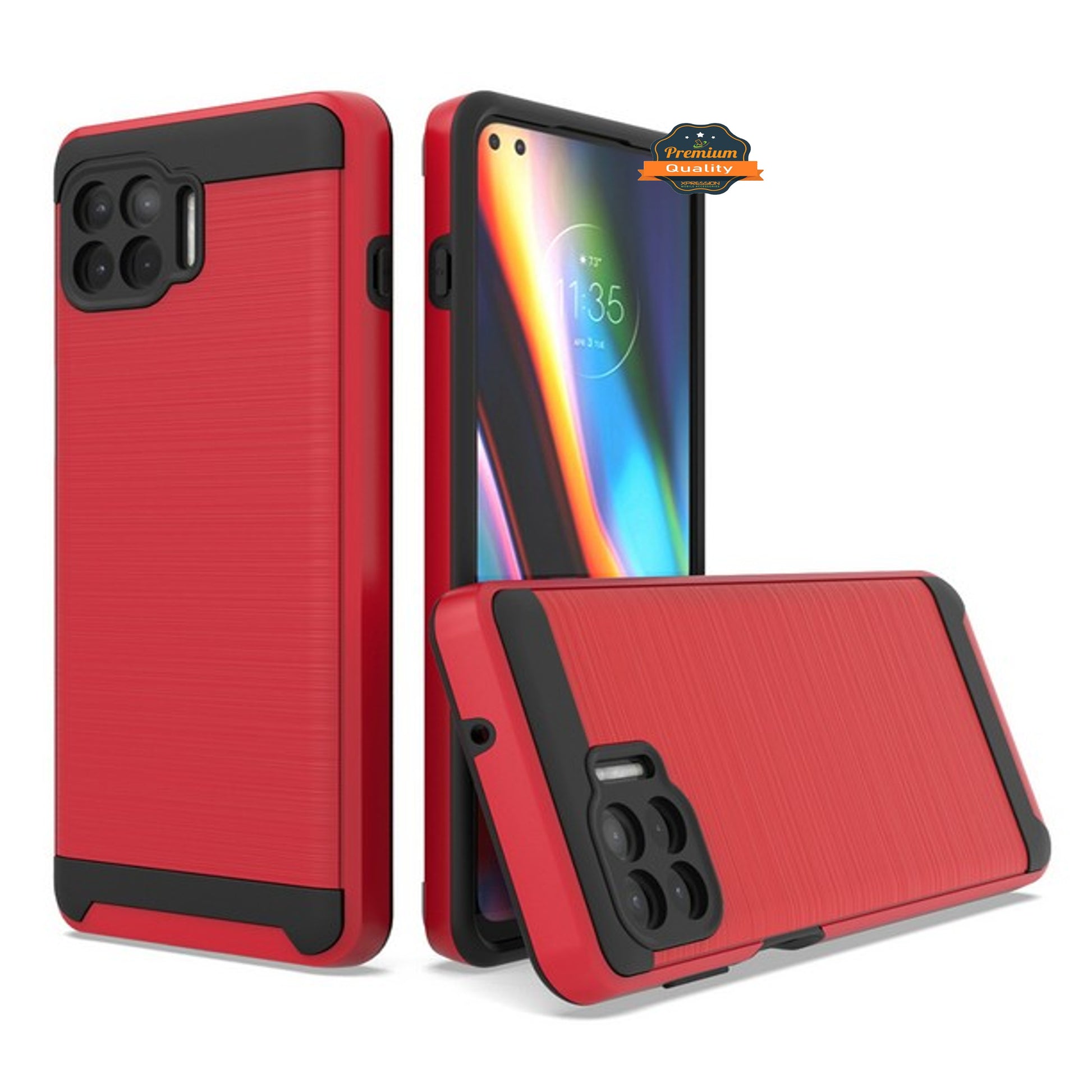 Motorola Moto One 5G, Moto G 5G Plus Rugged TPU + Hard PC Brushed Metal Texture Hybrid Dual Layer Armor Shockproof