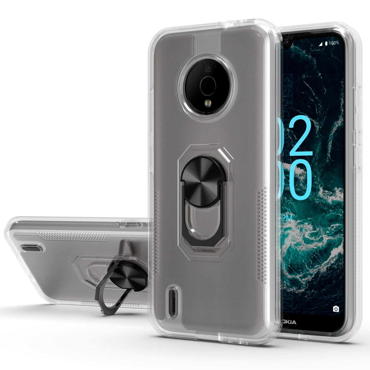 For Nokia C200 Clear Transparent Armor Rugged Defender Shockproof Hybrid with Ring Holder Kickstand Phone Case Cover