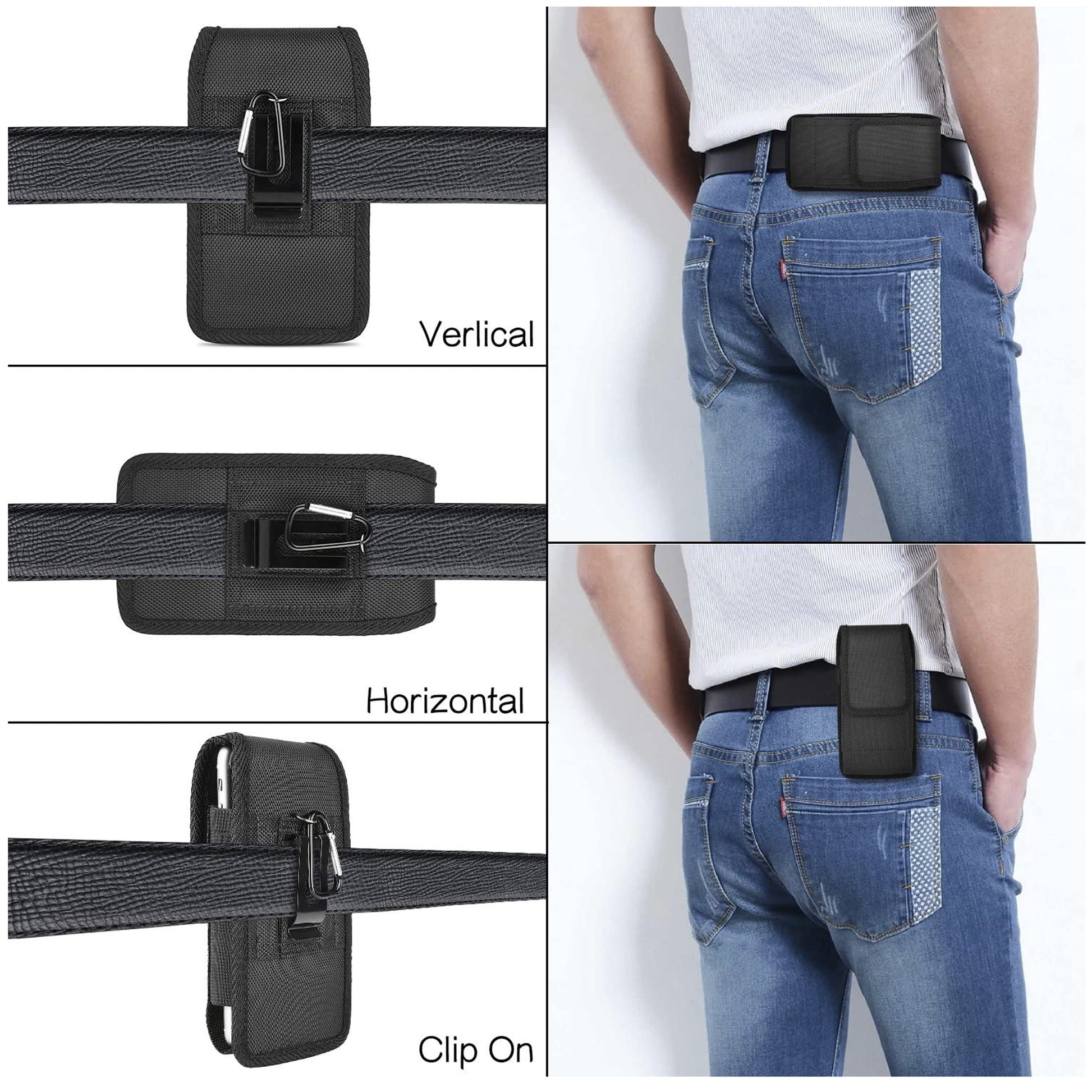 Black Universal Vertical Pouch Belt Holster Case Phone Holder with Belt Clip Loop, Carrying Pouch Large Size Holds Phone Up To 7 Inch and Works with Thick Cases