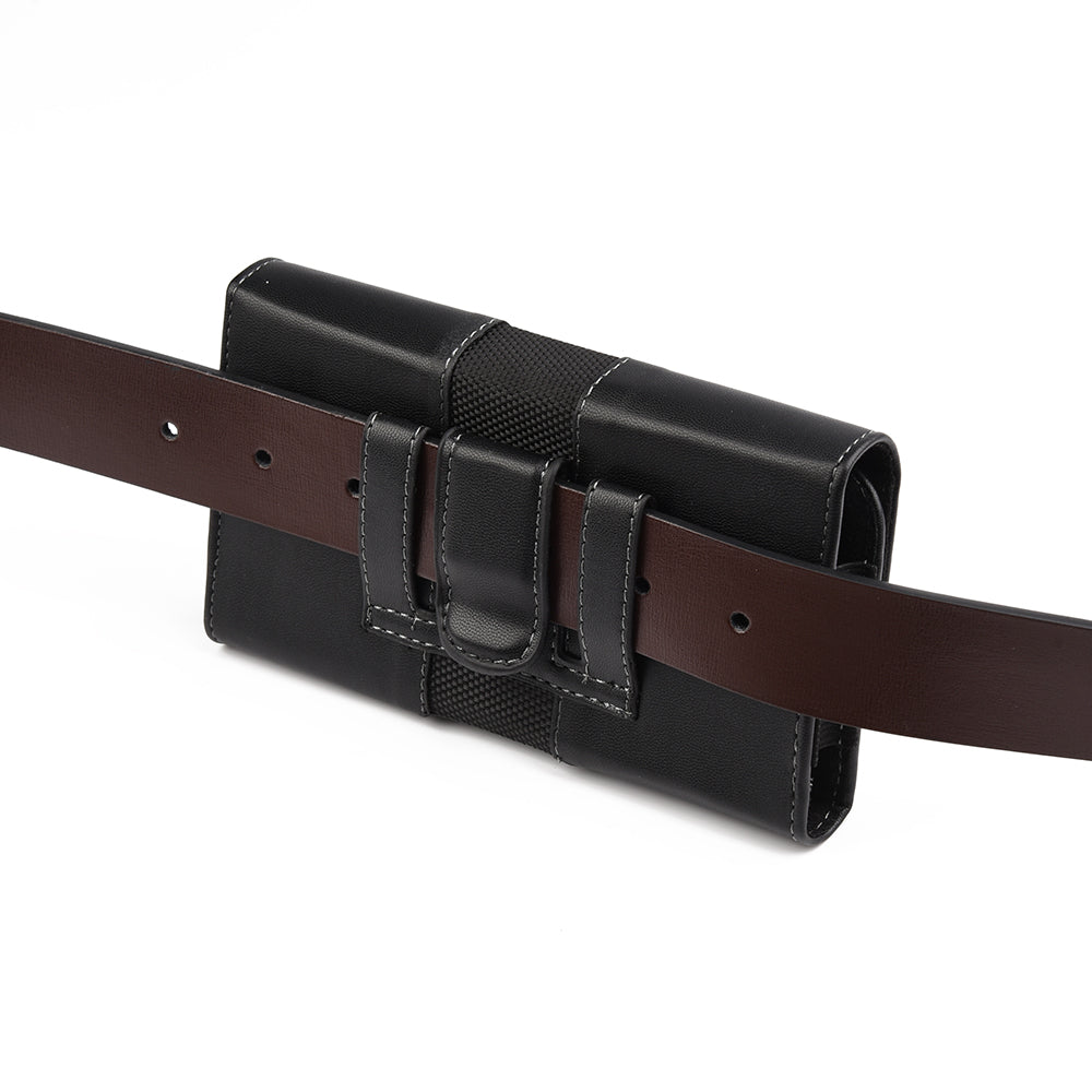 Black Universal Horizontal Pouch Case Phone Holder with Belt Clip, Loop Magnetic Closure Carrying on Pouch Cover Fit Large Phone Device
