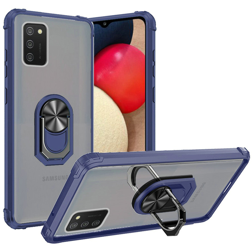 For Samsung Galaxy A02S Clear Silicone Shockproof Tuff Hybrid Protection Cover Transparent TPU with Magnetic Ring Kickstand Blue Phone Case Cover