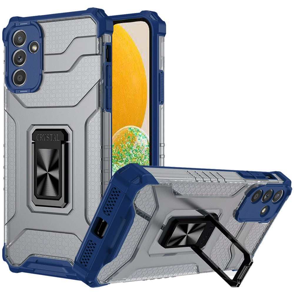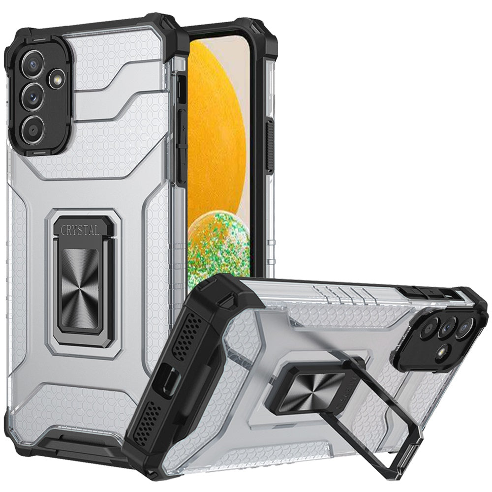 For Samsung Galaxy A02S Transparent 360 Rotation Built-in Magnetic Ring Kickstand Holder Hybrid Rugged Armor Bumper Phone Case Cover