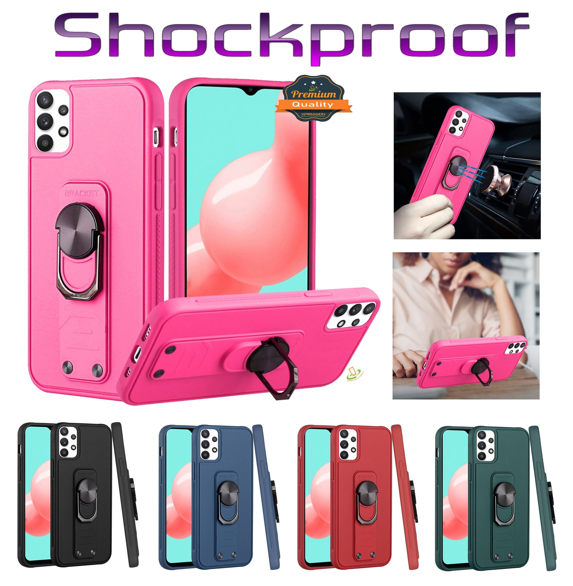 Samsung Galaxy A02S Tuff Hybrid Solid Magnetic Ring Kickstand with Rotating Stand Heavy Duty PC + TPU Shockproof