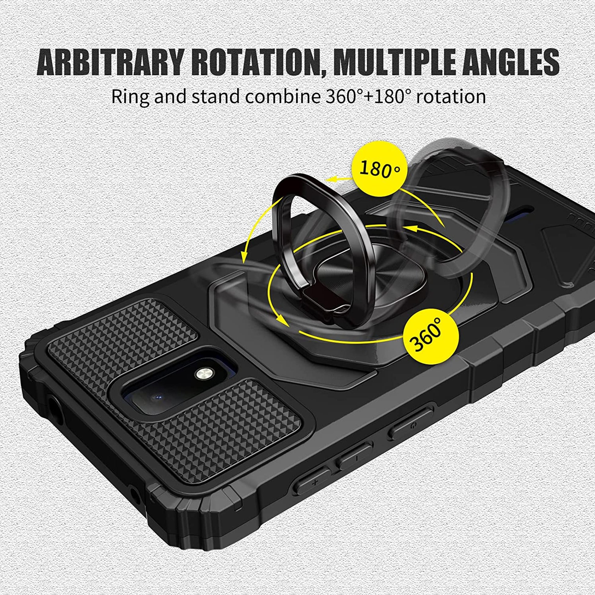Premium Case with Built-in 360°Rotating Ring Kickstand Fit Magnetic Car Mount, Shockproof Military Hard PC & TPU Bumper Hybrid Protective Cover [Magnetic Car Mount Holder Not Included]