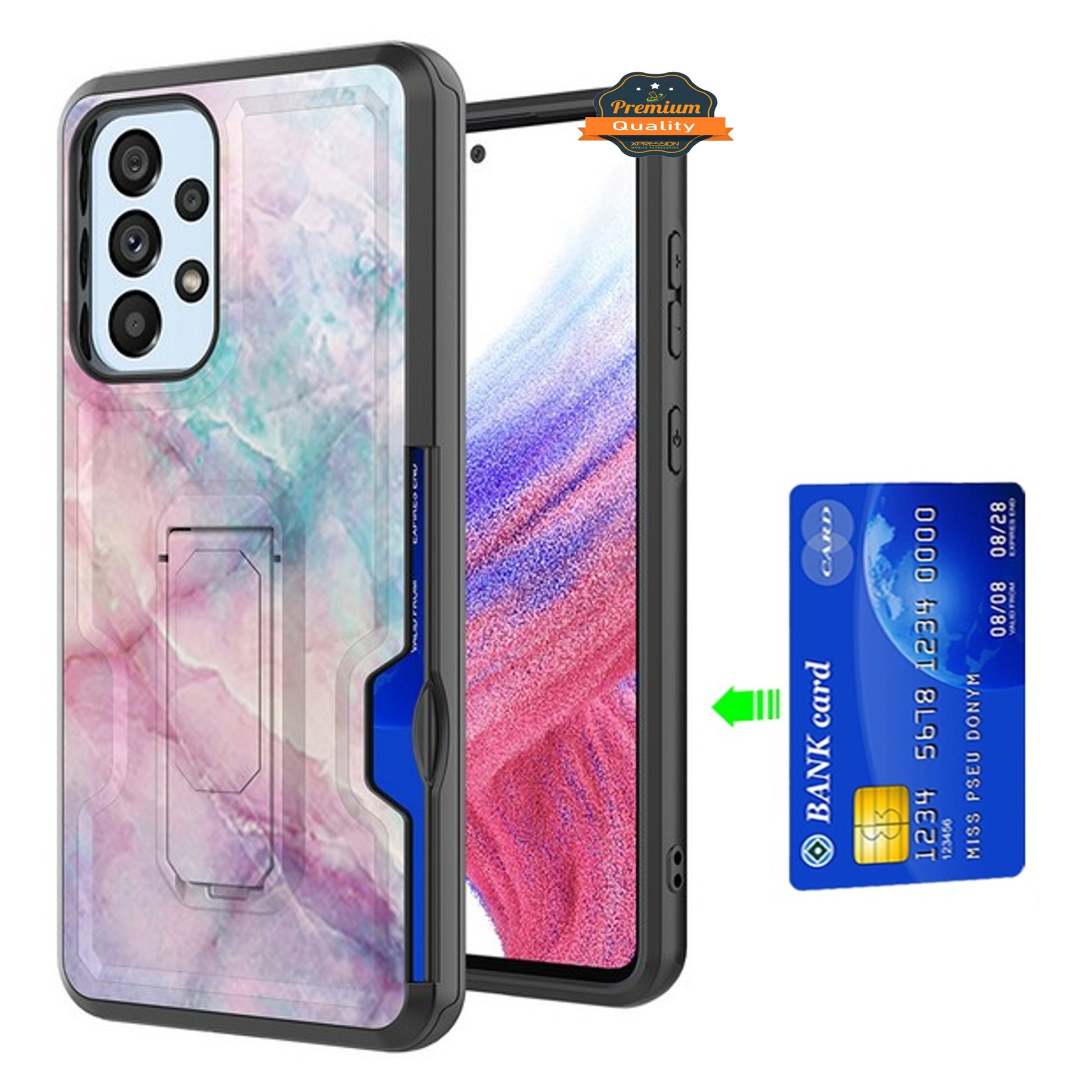 Wallet Credit Card Holder Hidden Back Pocket Hybrid Rugged Rubber Bumper Protective Hard Shell Cover with Kickstand Dual Layer Hard PC Soft TPU Shockproof Case