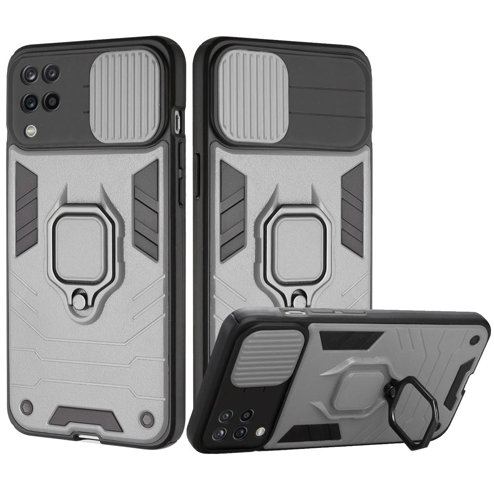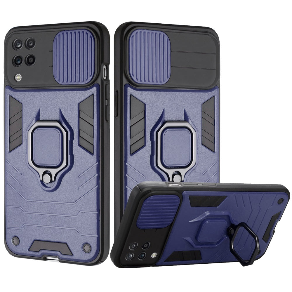 Samsung Galaxy A12 5G Kickstand Hybrid with Slide Camera Protector, Built-in 360° Rotate Ring Stand Magnetic PC & TPU Bumper