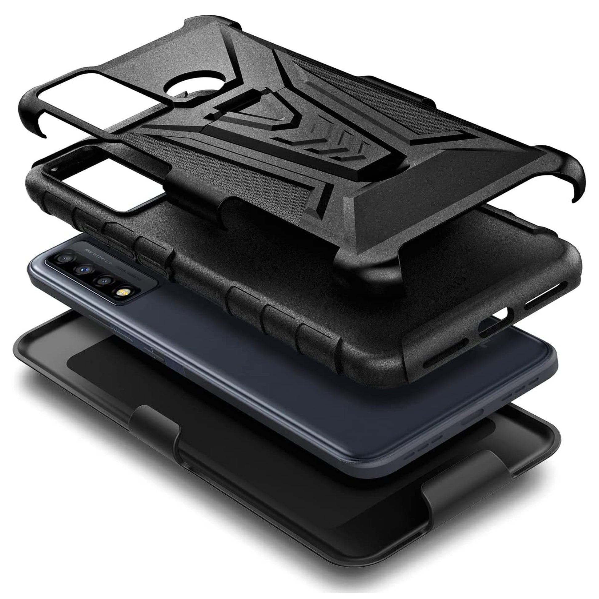 Combo 3 in 1 Phone Cover Hybrid Rugged Heavy Duty Protective Phone Case, Shockproof Drop Protection with Belt Clip Holster & Kickstand Cases