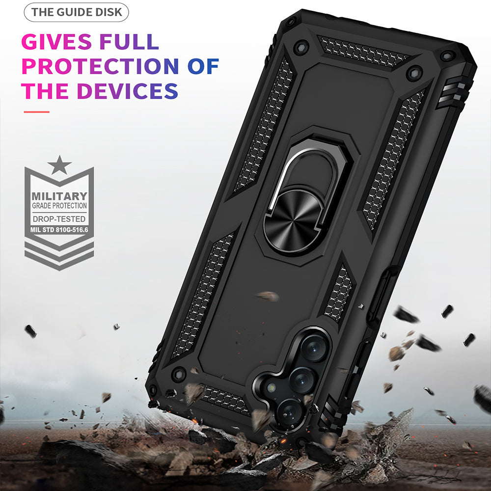 For Samsung Galaxy A13 5G Military Grade Heavy Duty Armor Hybrid with Rotating Metal Ring Kickstand Finger Loop Stand Phone Case Cover