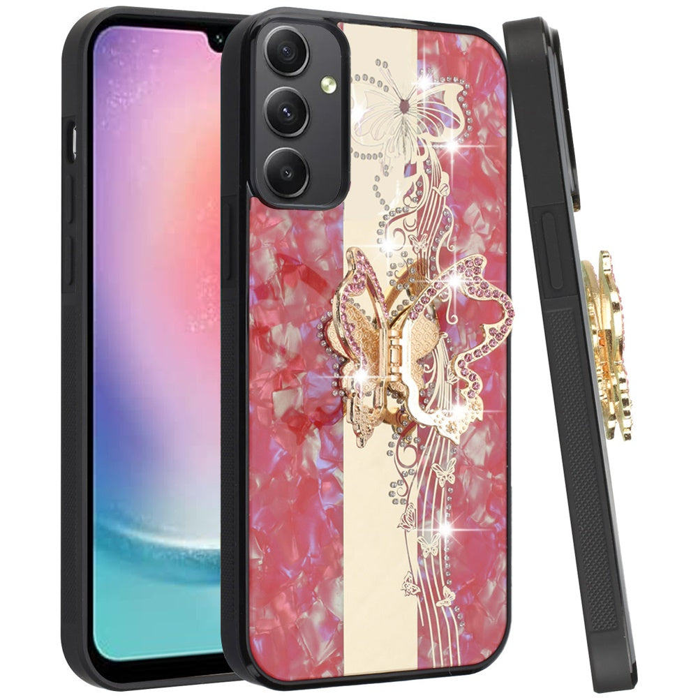 Slim Luxury Bling Rhinestone Glitter Crystal Design TPU Case With Butterfly Ring Stand Hybrid Shockproof Phone Case