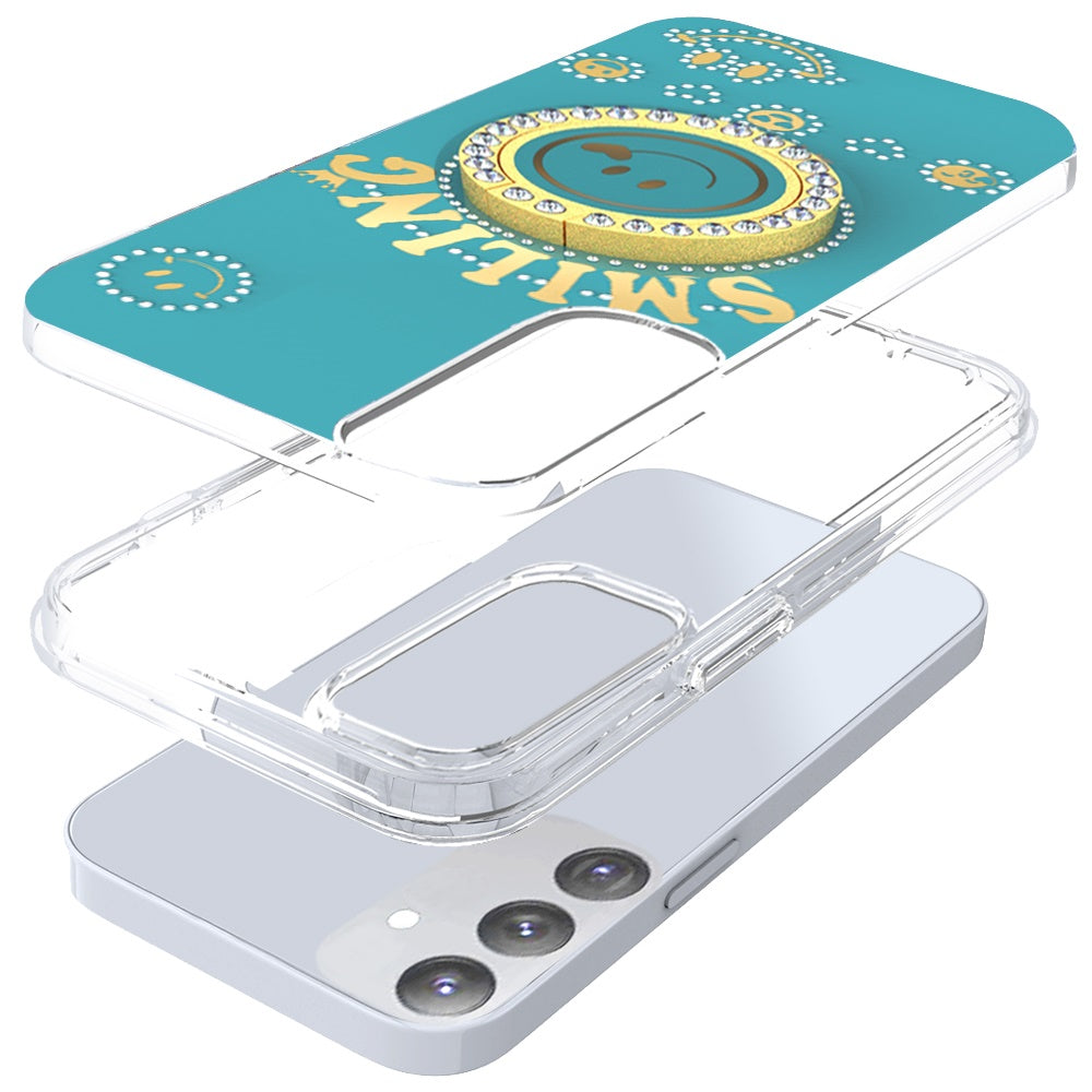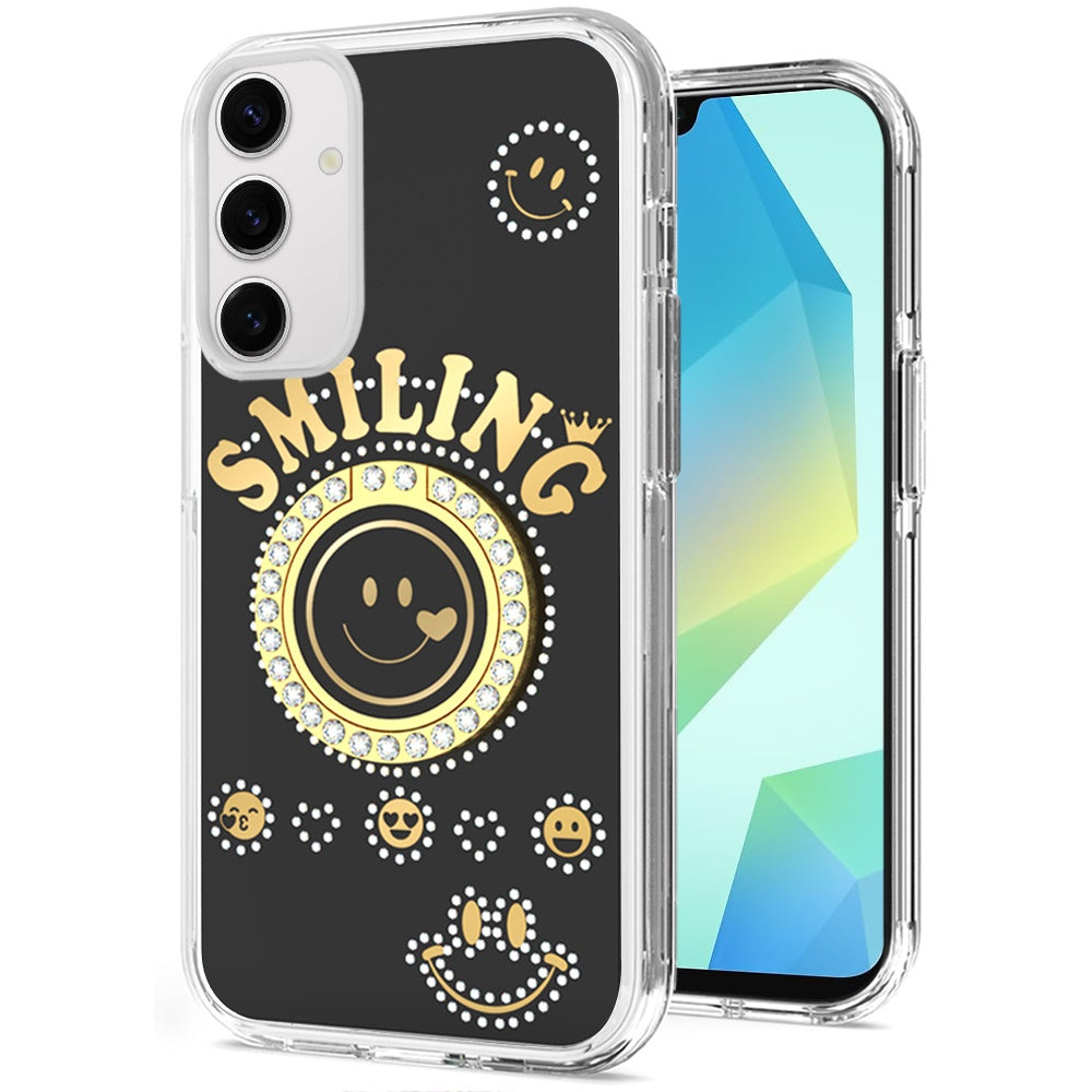 For Samsung Galaxy A16 5G Smiling Glitter Ornament Bling Sparkle with Ring Stand Hybrid Slim TPU + Hard Back Shell Case Cover