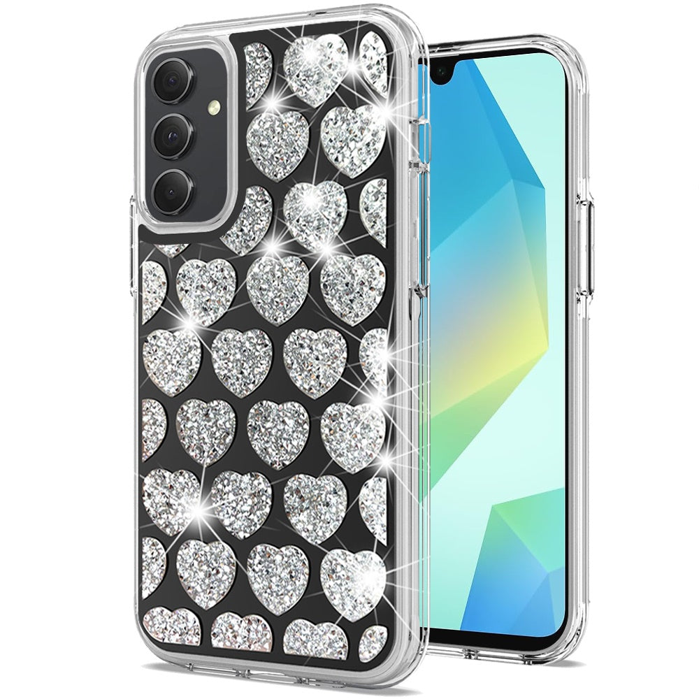 For Samsung Galaxy A16 5G Sparkly 3D Design Diamond Shockproof Protective Bling Glitter Rhinestone Hybrid Skin PC + TPU Case Cover