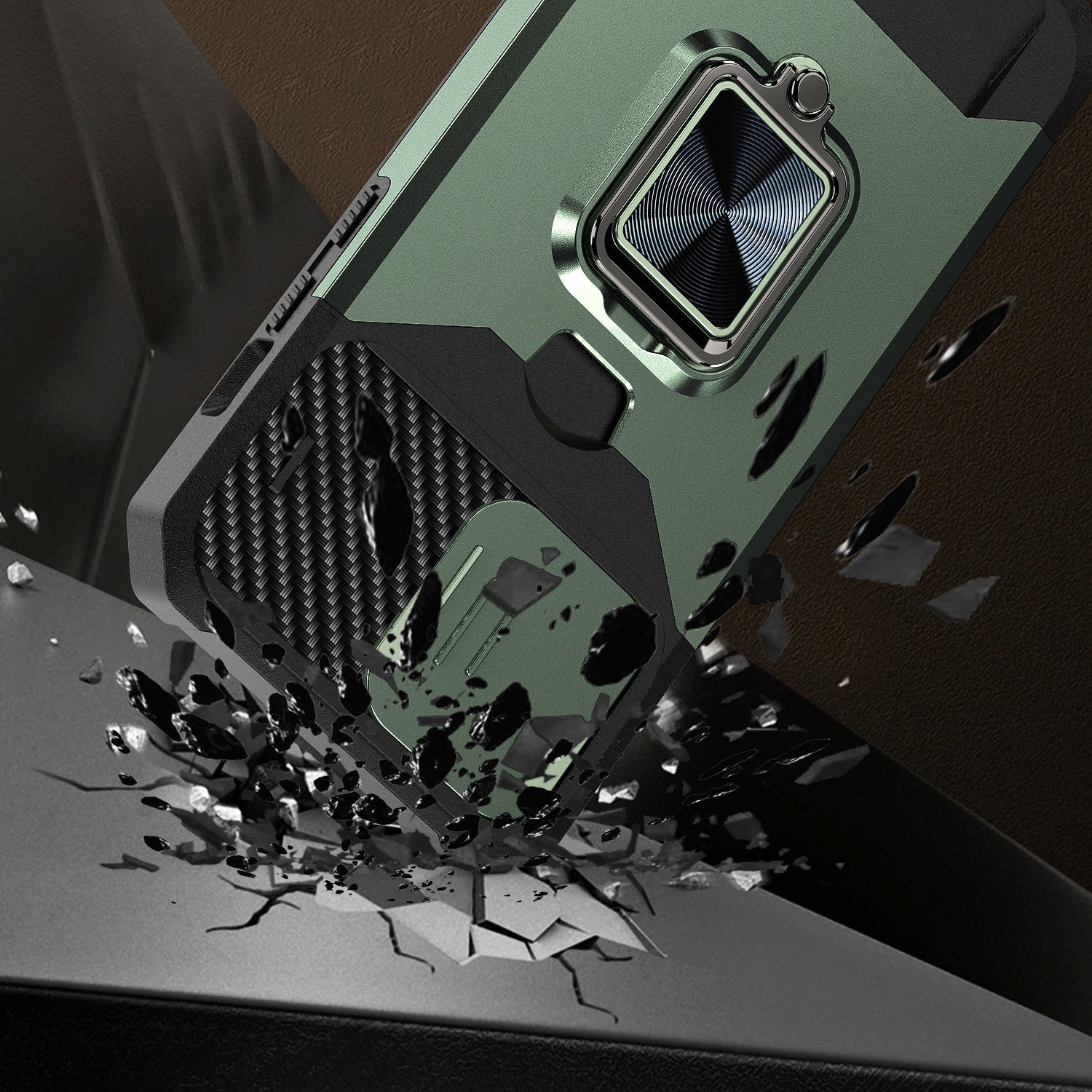 Green Cell Phone Case For Galaxy A16 Premium Military Grade Drop Protection with Card Holder Slot and Camera Cover Slide, Heavy Duty Rugged Shockproof Phone Cover Built in Ring Stand Holder. Precise Cutouts & Sensitive Buttons Easily access buttons, speaker, camera, charging interface at the precise cutouts made from precision molding