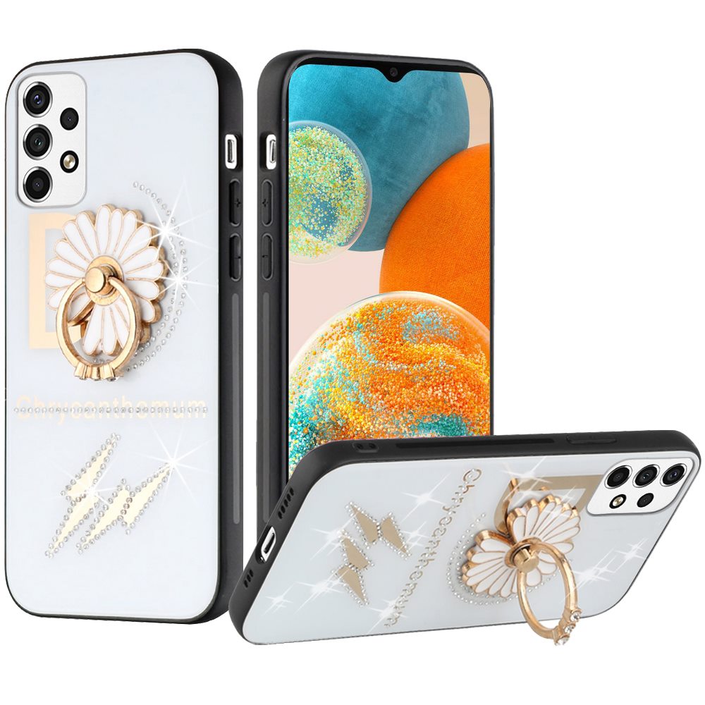 Slim Luxury Bling Rhinestone Glitter Crystal Diamonds Love Floral Design TPU Case With Ring Stand Hybrid Shockproof Phone Case