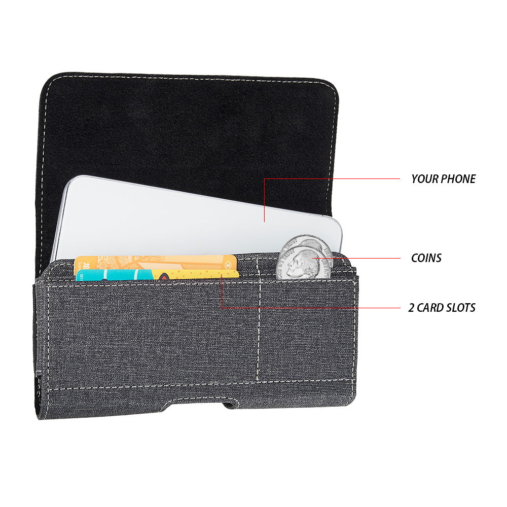 Universal Horizontal Pouch Phone Holster with Belt Clip / Belt Loops and Credit Card ID Slot Storage Holder Cover