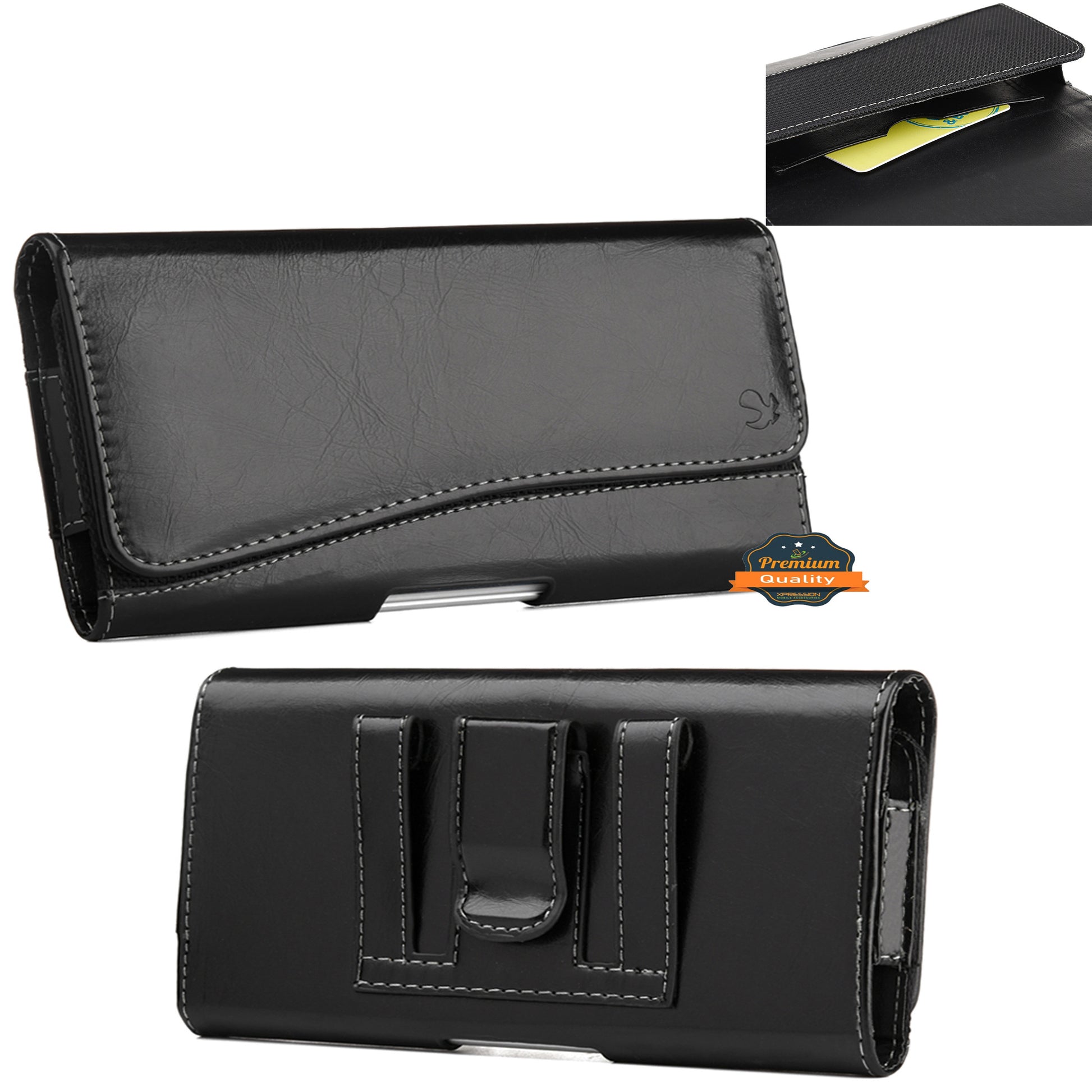 Black Universal Horizontal Pouch Case Phone Holder with Belt Clip and Belt Loop, Built in Card Bag Magnetic Closure Carrying on Pouch Cover Fit Extra Large Phone Device