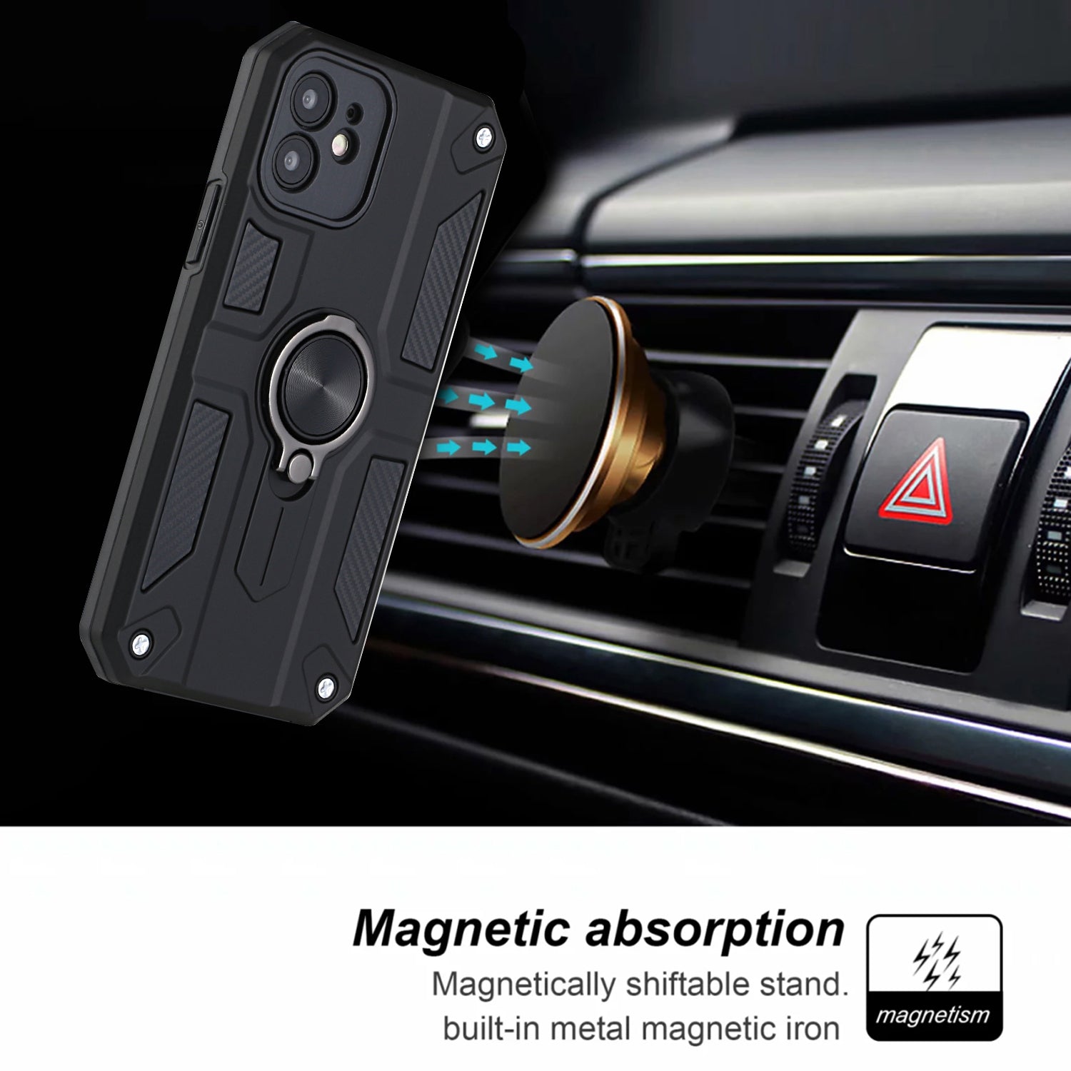 Military Grade Drop Full Body Rugged Hybrid Cover Anti-Scratch Protective Magnetic Stand Ring Kickstand Holder (Support Magnetic Car Mount)