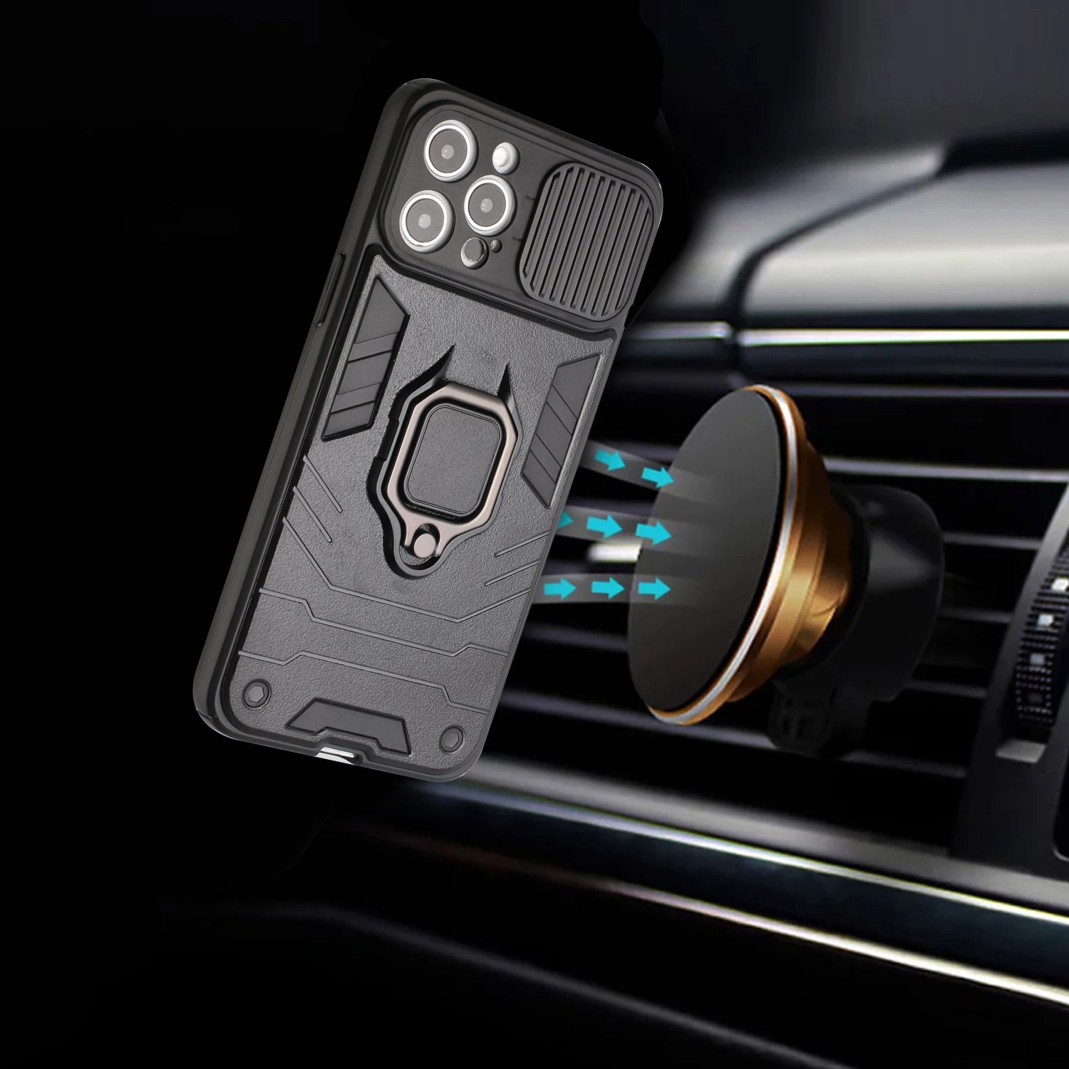 Premium Shockproof Hard PC & Soft Silicone Bumper Hybrid Cover [Built in Kickstand & Slide Camera Protector] [Magnetic Car Mount Holder Not Included]