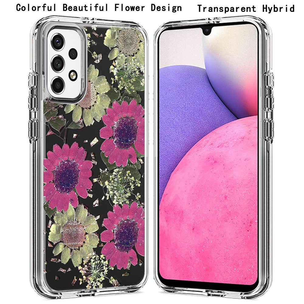 For Samsung Galaxy A33 5G Glitter Floral Print Pattern Clear Design Shockproof Hybrid Fashion Sparkle Rubber TPU Bumper Phone Case Cover