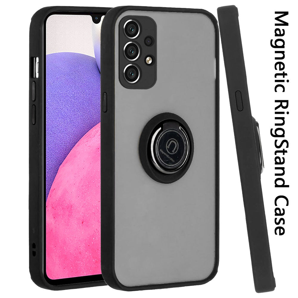 Premium Frosted Hybrid PC TPU with Magnetic Metal Ring and Covered Camera (Not Lens) 360 Degree Rotation Finger Ring Kickstand Work with Magnetic Car Mount Heavy Duty Protector Cover