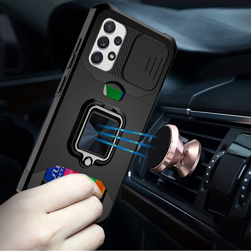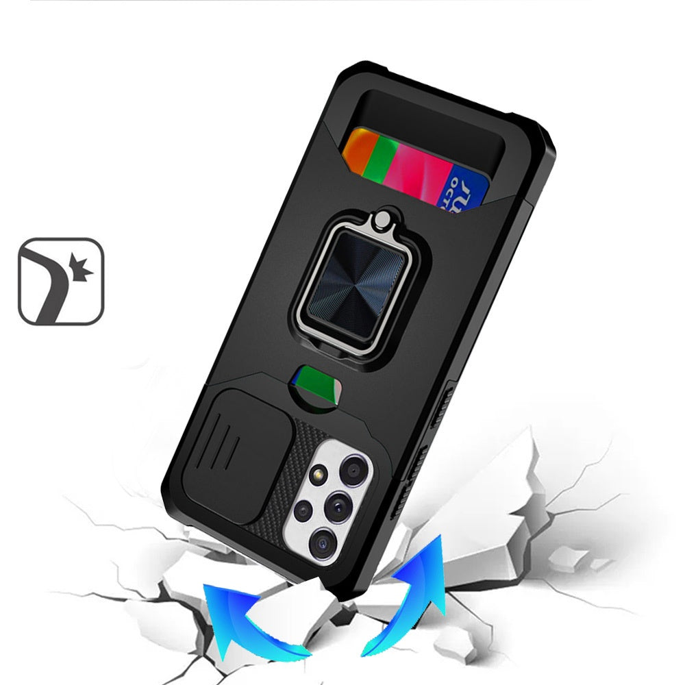 Black Phone Case Cover For Galaxy A52 5G Premium Military Grade Drop Protection with Card Holder Slot and Camera Cover Slide, Heavy Duty Rugged Shockproof Phone Cover Built in Ring Stand Holder. Precise Cutouts & Sensitive Buttons Easily access buttons, speaker, camera, charging interface at the precise cutouts made from precision molding