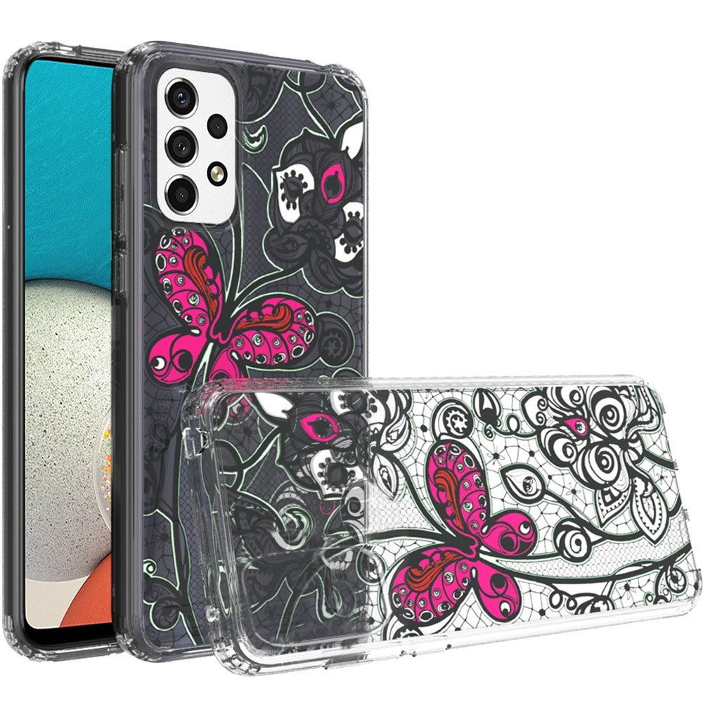 For Samsung Galaxy A53 5G Cases Pattern Design Ultra Thin Clear Hybrid Rubber Gummy TPU Grip + Hard PC Back Shockproof Phone Case Cover