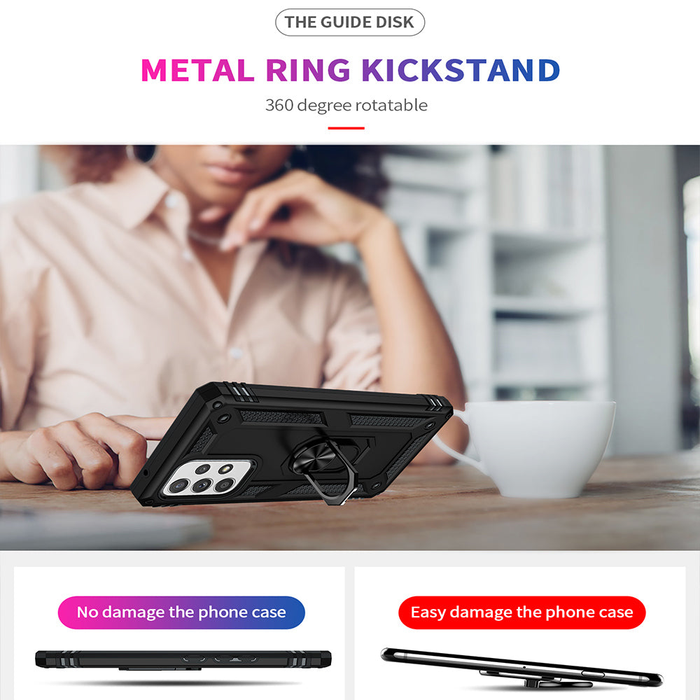 For Samsung Galaxy A53 5G Military Grade Heavy Duty Armor Hybrid with Rotating Metal Ring Kickstand Finger Loop Stand Phone Case Cover