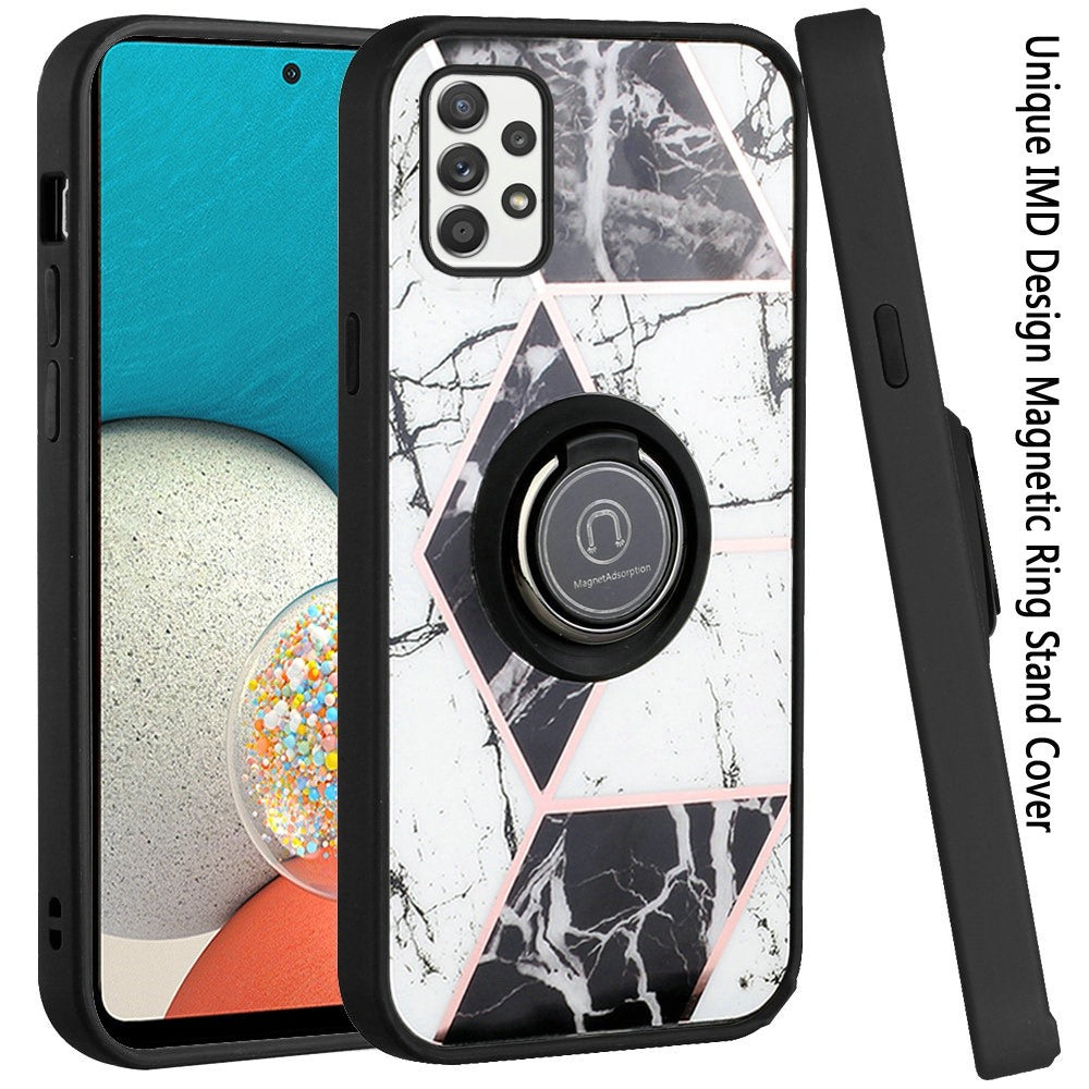 For Samsung Galaxy A53 5G Unique Marble Design with Magnetic Ring Kickstand Holder Hybrid TPU Hard PC Shockproof Armor Phone Case Cover