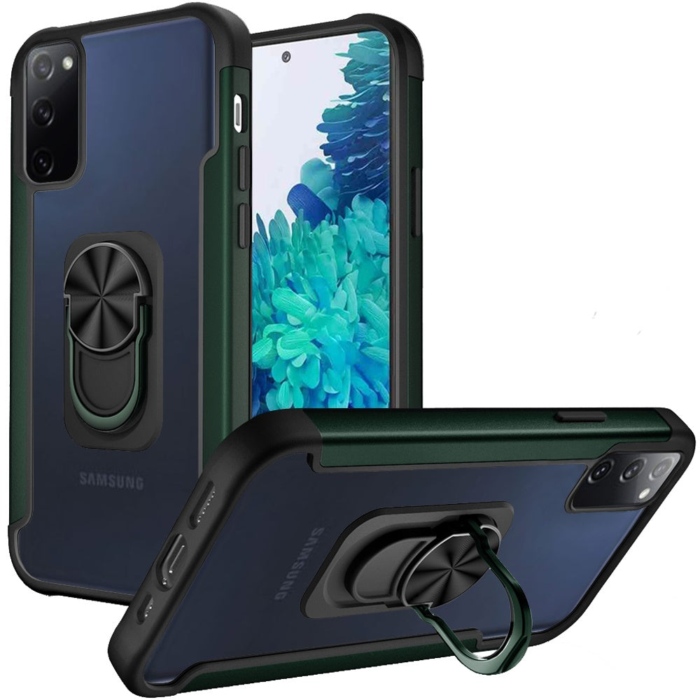 For Samsung Galaxy S20 FE /Fan Edition 5G Clear Alloy Hybrid with Ring Holder Kickstand [Magnetic Car Mount Feature] Phone Case Cover