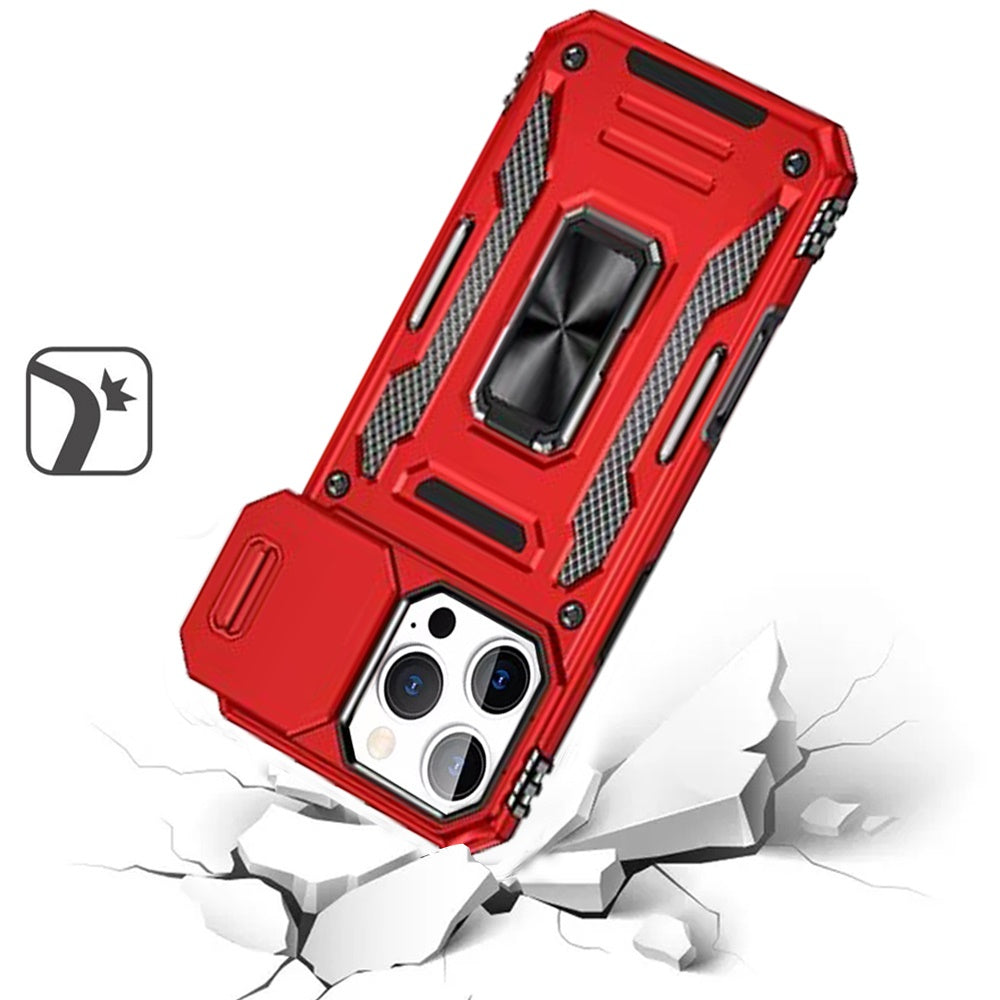 For Samsung Galaxy S20 Ultra Tough Hybrid Case with Movable Camera Window & Metal Ring Stand Shockproof Case Cover Red